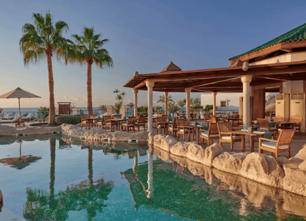 The resort's design is breezy and tropical with plenty of Asian influences. In fact, the flagship restaurant, Sala, is entirely hand-carved in the image of a Thai garden house and serves mouth-watering cuisine! For lunches and dinners, dine in the 'marketplace' with its six sizzling open kitchens, in an open-air courtyard accompanied by Bedouin musicians, or at the Beach House with its wonderful views of the House Reef. On lazier afternoons, enjoy strolls along the promenade, tea in the bright Azure Lounge, or a dreamy massage at the spa (or all three).