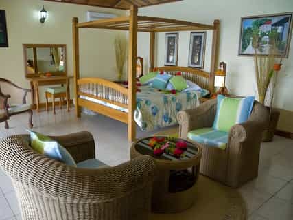 The perfect place for guests traveling to La Digue Island; Patatran Hotel offers a unique atmosphere of peace and tranquility. The hotel is located at Anse Patates which can be reached by bicycle or on foot if you are up for a hike, but if you have luggage it is more advisable to take a taxi from the jetty. We also have a restaurant where guests can enjoy a breakfast buffet, afternoon lunch by the pool, or creole dinners. A bar is also available where guests can enjoy cocktails at their own cost.