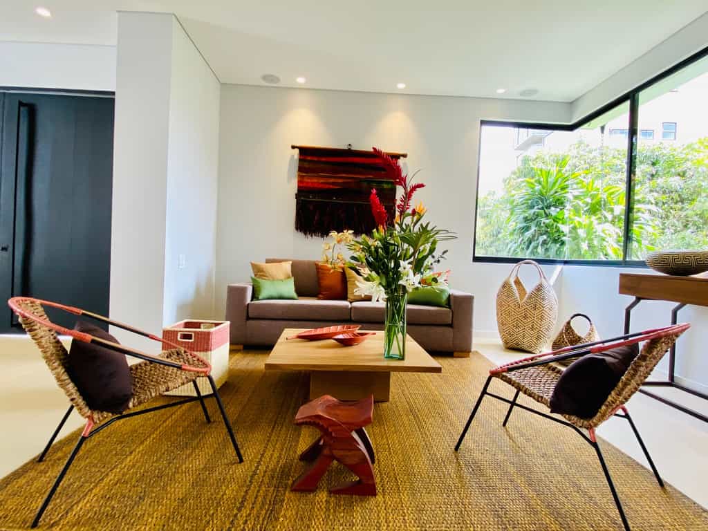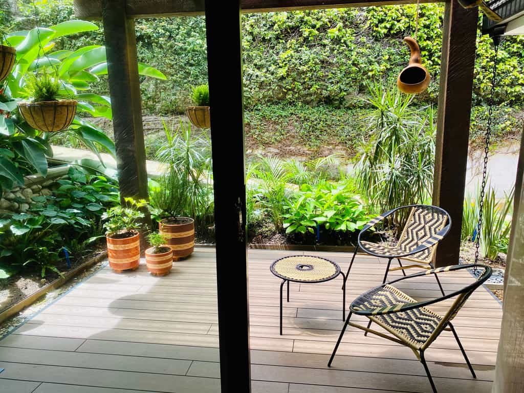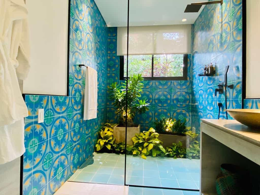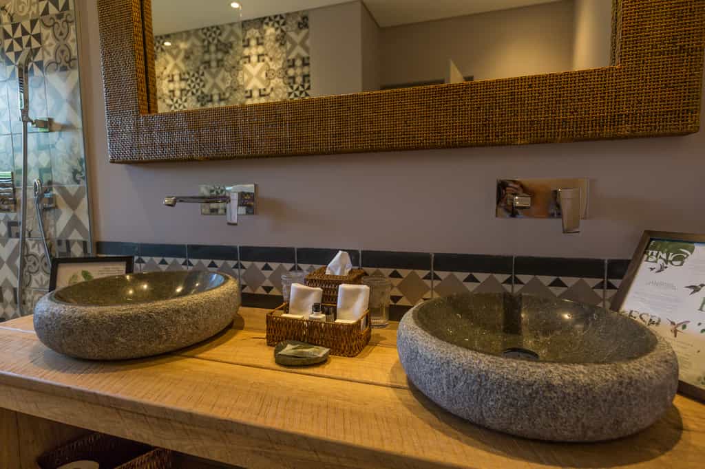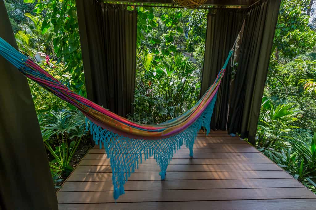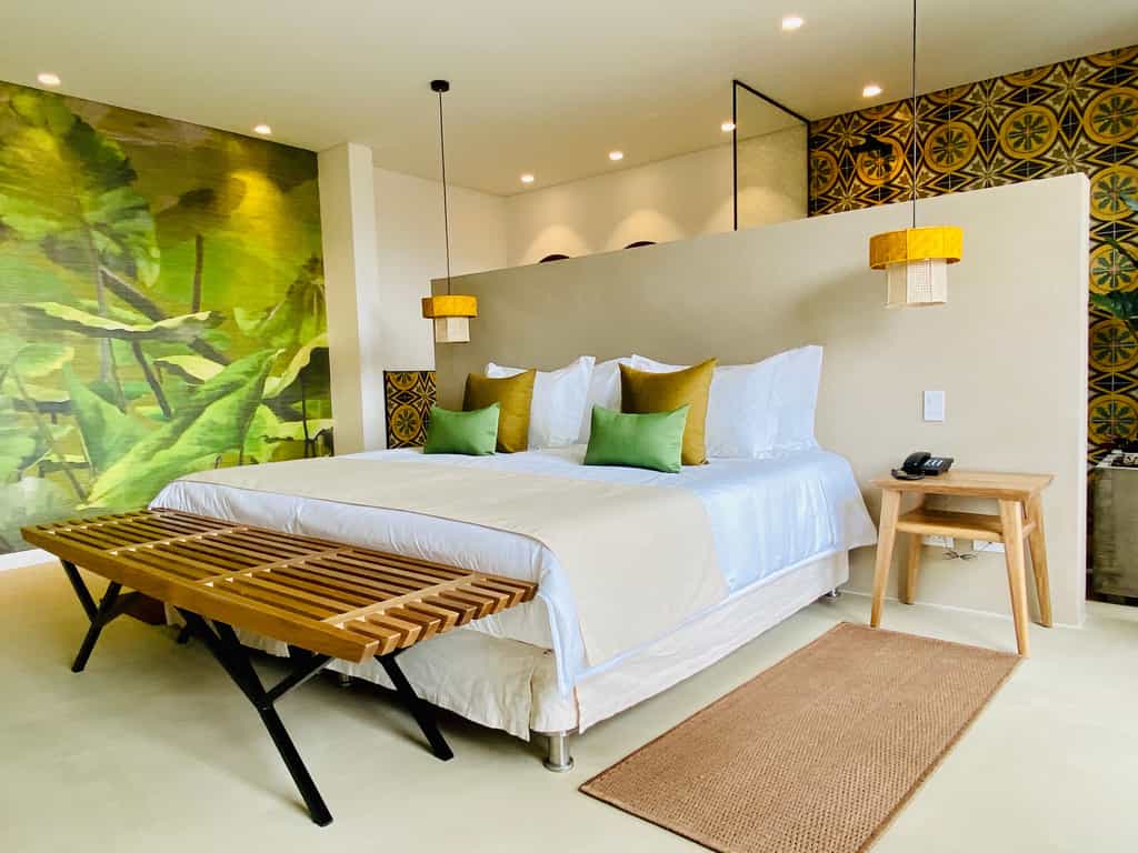 There are 13 rooms, each named after a place visited and loved by the owners, and decorated accordingly. The Provence room is accented with shades of lavender, whilst the India rooms are draped in vivid textiles. Features vary from room to room but can include private hot tubs, terraces strung with hammocks, and large bathrooms. Overall, the rooms are light-filled and artfully done with bold design choices accented by chic, minimalist furnishings.