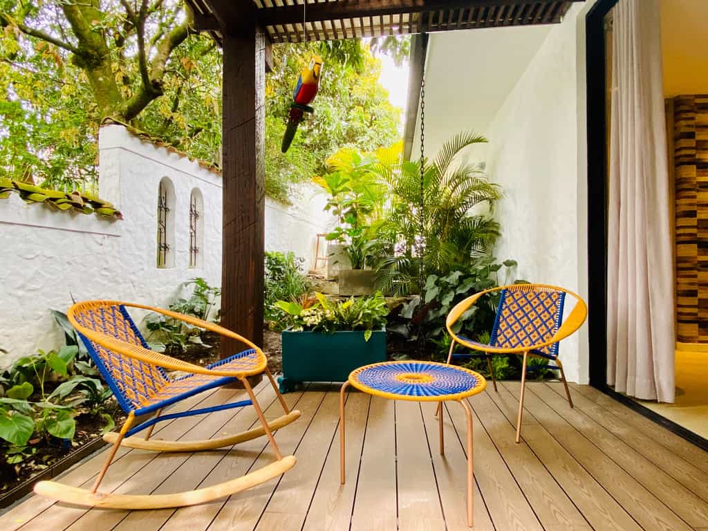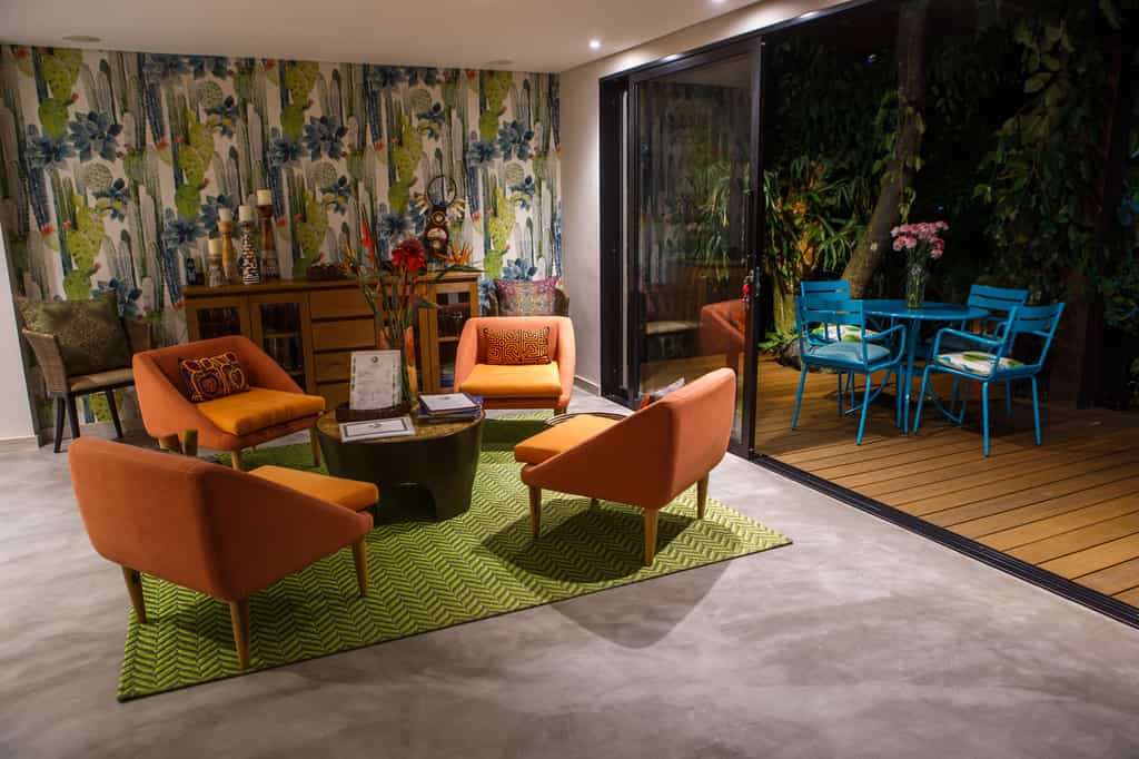 Sheltered by gardens where orchids, birds of paradise and all manner of fruit trees grow, the hotel has plenty of places to linger for a while including hammocks, loungers and a hot tub engulfed in bougainvillea. A breakfast of fruit, freshly-squeezed juices, pastries and eggs made to order is served on the sunny terrace where hummingbirds will flit in and out of view. In the evenings, enjoy a selection of drinks and snacks in the garden. Inside, the sitting room and library are decorated with Colombian prints and pottery.