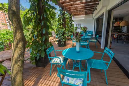 Set in the centre of the buzzing but leafy neighbourhood of EL Poblado Provenza, the Hotel Patio del Mundo is a set of two carefully-renovated houses surrounded by gardens brimming with colour. A blend of Colombian and French style, the hotel is filled with items collected on the owners' travels and each of the rooms are named after a place they've visited. While the busyness of the city seems to just fall away in this charming location, you're still an easy taxi ride away from the major attractions of Medellin, including the iconic Botero Plaza and the street art hub of Comuna 13.