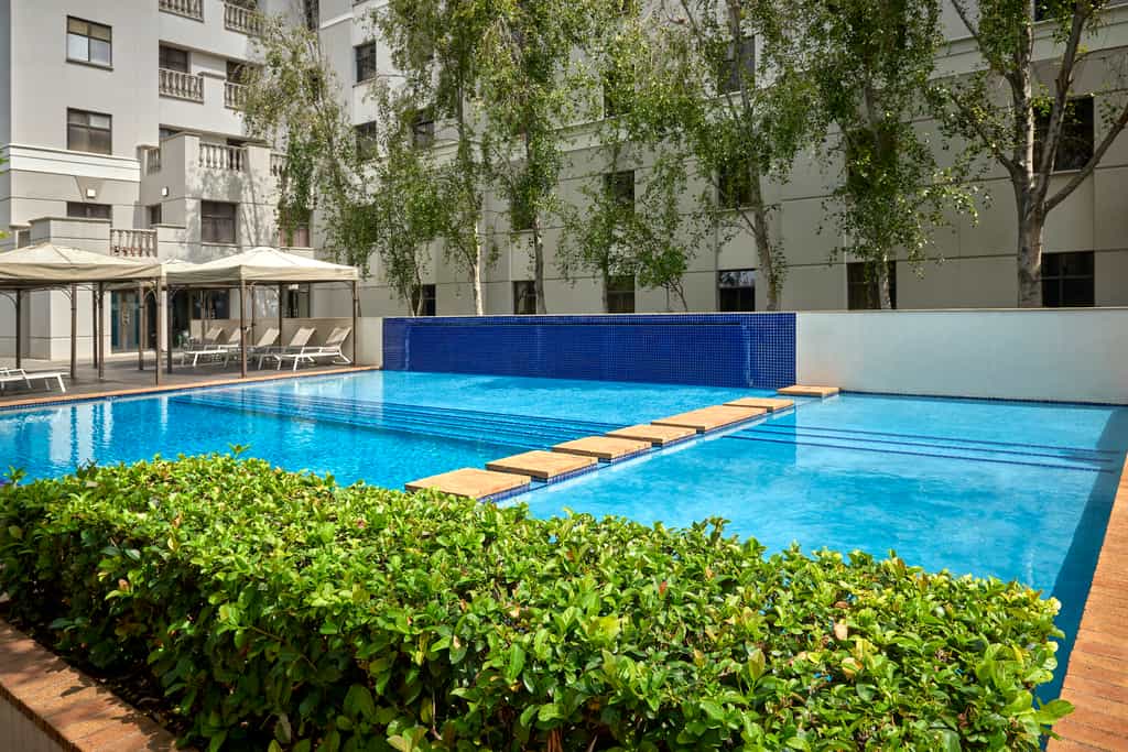 Escape to the Peermont Metcourt at Emperors Palace, and experience the contemporary convenience this 3-star gem has to offer. The hotel’s modern façade is complimented by a private pool terrace, set in a beautifully manicured garden. Guests can enjoy an early morning swim followed by breakfast at the F.L.A.G Café, or enjoy a sundowner at the 21 Degrees cocktail bar. Even business guests will feel at home with a boardroom and business centre available for their exclusive use. The hotel offers 348 stylish and comfortable rooms and is the Peermont Metcourt Hotel is ideal for corporate, convention and leisure guests, as well as groups. The Peermont Metcourt Hotel annex includes the grand Capri Suite, comprising of a private lounge and dining area balcony overlooking the pool terrace, additional seating to the existing F.L.A.G. Café, an extra guest lift, a sky bar, a 24 hour gymnasium and enhanced access to the offerings of the entire Emperors Palace resort.