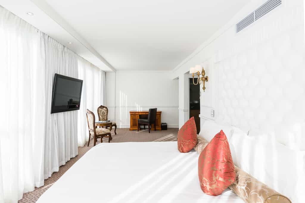 This stylish place combines the best features of an international hotel with the warmth of a smaller boutique lodge. The lobby is glossy and super-chic, while the on-site COPA Restaurant nods to the city's Victorian heritage. (The menu though is modern – we smacked our lips over the prawn and chicken curry). Grab a coffee and croissant from Ruby's Bakery & Cafe. Chill at the in-house cinema (what a treat!), spa or rooftop pool (with views worth tweeting about).
