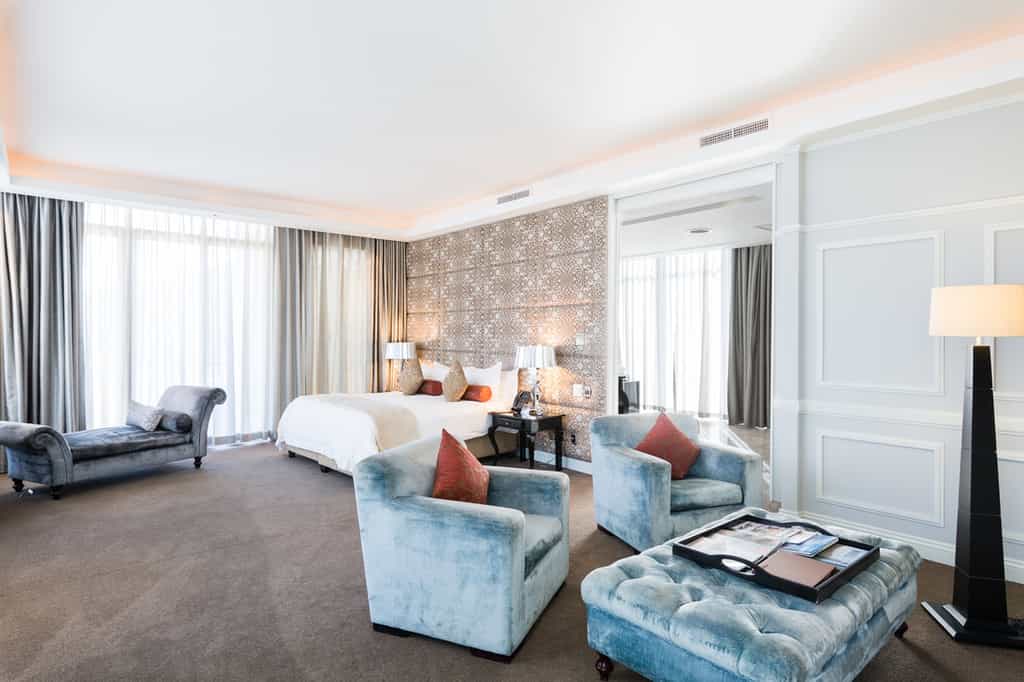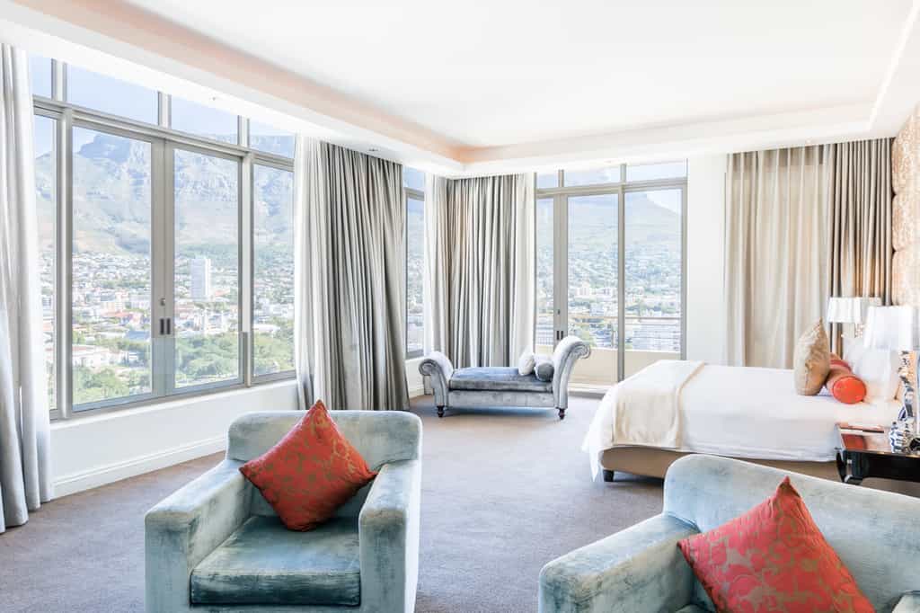 Whatever their size (and all are spacious), every room here is furnished with upscale amenities. You can expect quality linens, top-of-the-range mattresses, a large bathroom with baths and showers, and views to dream over – balconies overlook Table Mountain, Signal Hill or Table Bay. Superior Rooms have a good deal more acreage, king-sized beds and a small lounge. From here it just gets more extravagant – from two to three-bedroom suites to the practically palatial Presidential and Penthouse Suites.