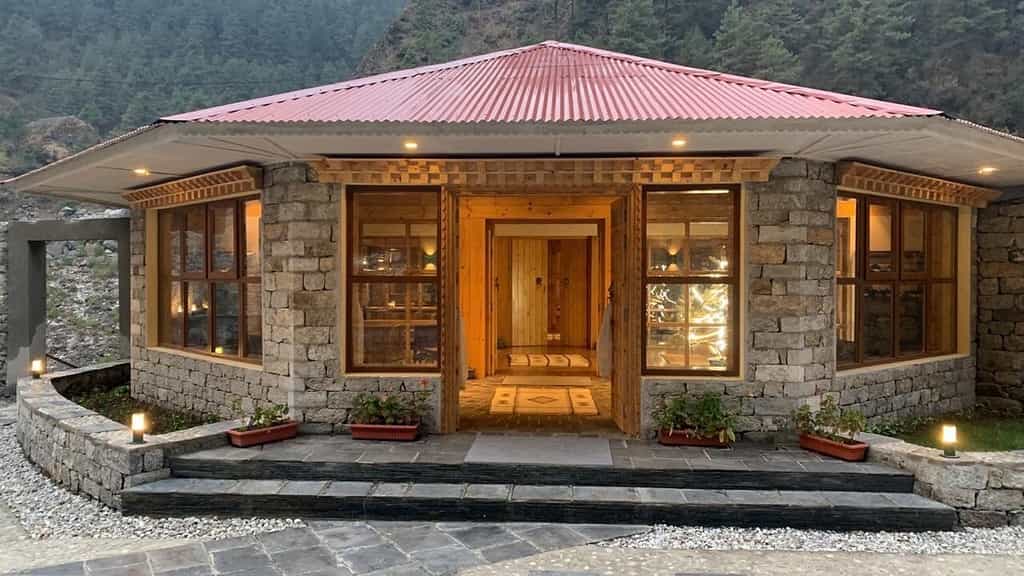 Three buildings work their way up from the riverbank, each one incorporating those enormous boulders that make the whole place feel like it grew here naturally. The dining room's beamed ceilings frame postcard views of the gorge, though the real social hub is that glass-walled sunroom where trekkers sprawl on sofas from sunrise to well past happy hour. The kitchen works minor miracles with organic produce from gardens you can wander through, while the bar stocks real spirits alongside the obligatory Everest beer. Fresh flowers appear daily, fires crackle in the evenings, and the setup feels altogether more Aspen than Everest.
