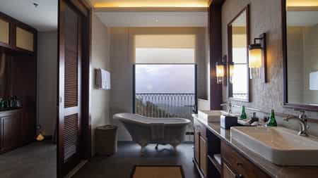The rooms at Plataran Bromo range in size and style, but across the board, they have a classic, streamlined look. Some have a more Balinese design and others are distinctly Japanese. The suites have polished wood panelling, wicker furnishings and white-washed walls and their bathrooms have a large, roll-top tub, whilst Mezzanine rooms share a sitting and dining area amongst seven screened rooms. If you book the three-bedroom Founder's Home, you'll have a fully-equipped dining room and kitchen.