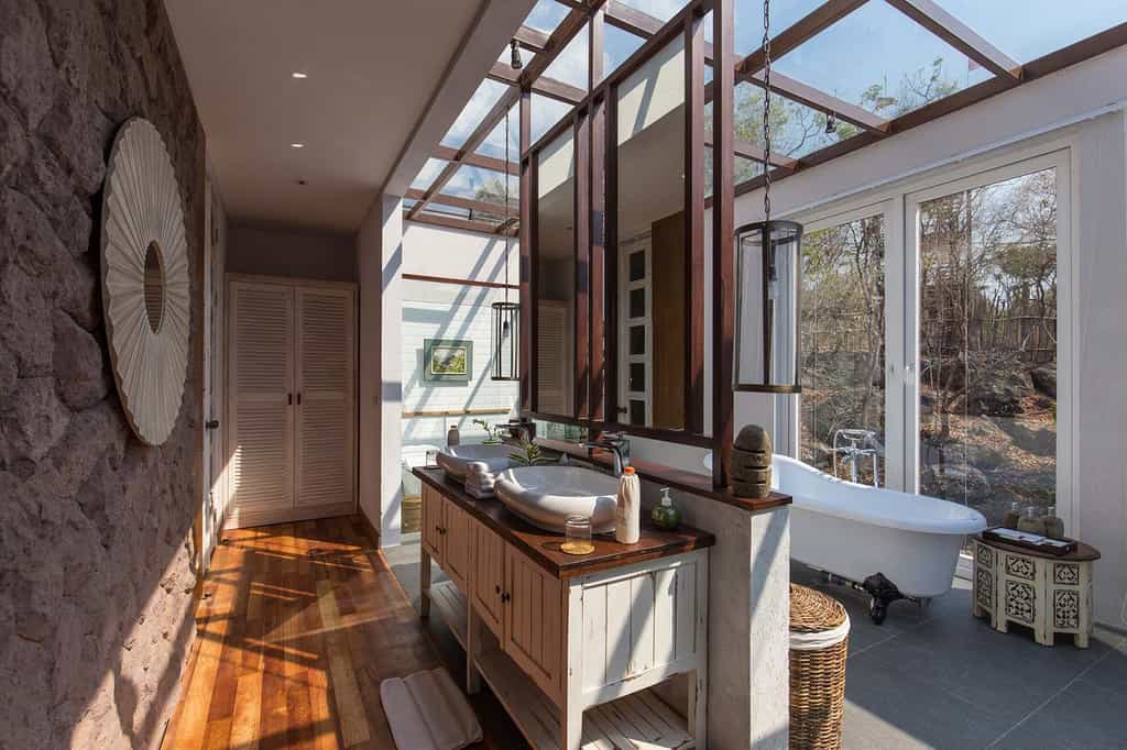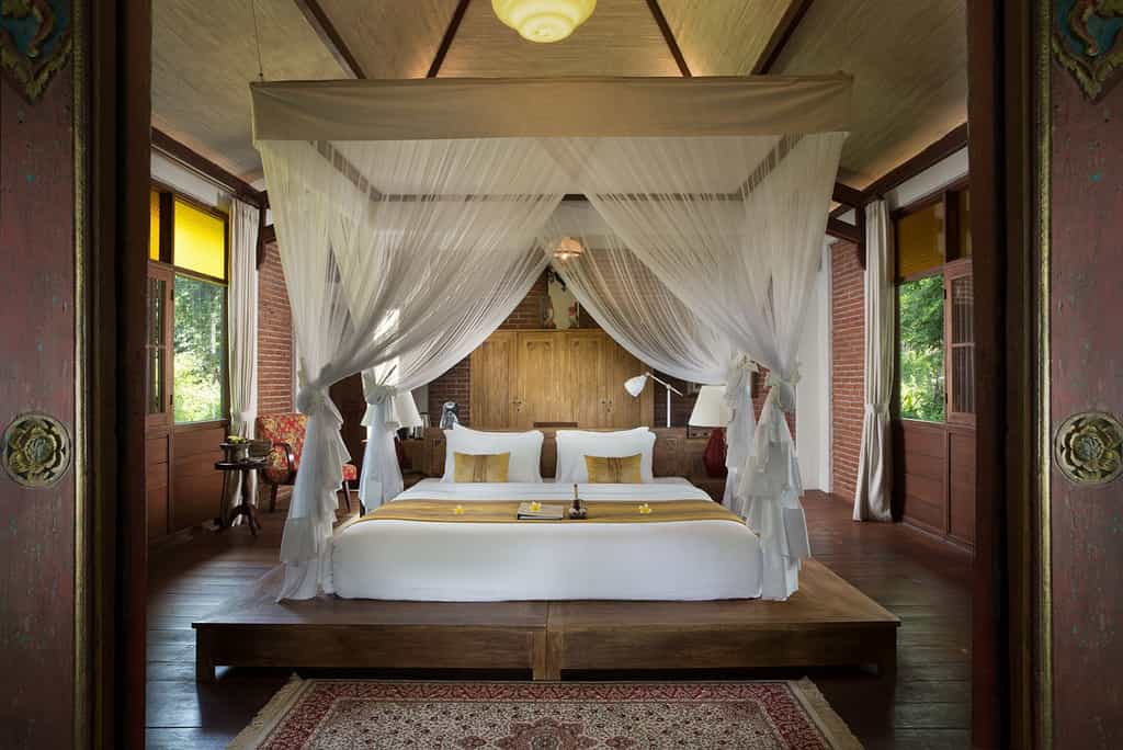 The resort has a collection of traditional Joglo villas, either nestled in the forest or hushed mangroves, but always enjoying a view of the ocean. All have four-poster beds draped in mosquito nets, large wooden desks, and beautifully-painted doors. The bathrooms are spacious and semi-outdoor with huge stone or clawfoot tubs. The larger villas have a more prominent lounge area and kitchenette, while the two-bedroom retreat has a connected terrace and its own patch of garden. For added privacy, book the Founder's Home, which has a selection of exclusive curated activities and culinary experiences.