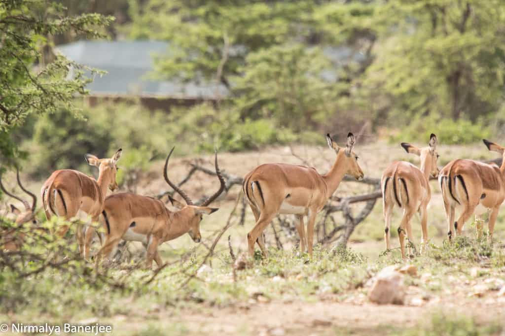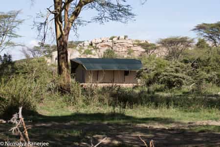 The main area is unpretentious and uncomplicated, yet appealing in its simplicity. One tent is furnished with classic (though comfortable) armchairs; the second contains the dining room, a pleasant space where evening meals are served by candlelight. Outside, shaded by a few umbrellas and a fever tree, are a few more tables, and there's an open-air fireplace around which you can share your experiences. Your warm hosts are Jui and Nirmalya Bannerjee, whose passion for the bush is infectious.