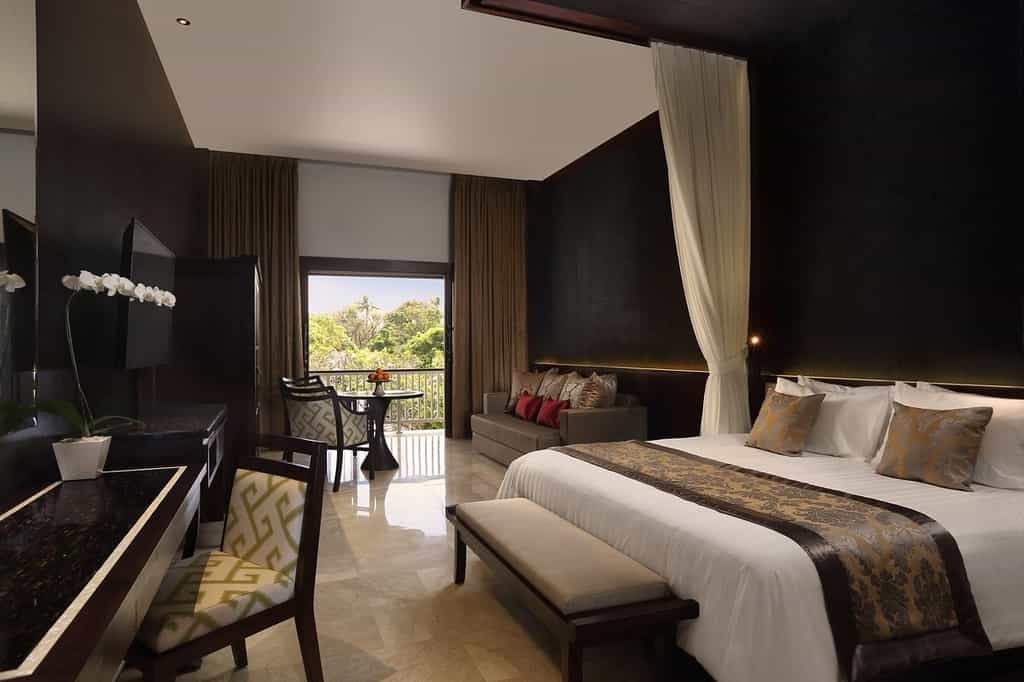 Surrounded by pretty, tropical gardens, Puri Santrian's design was inspired by a royal Balinese compound. Sitting contentedly between two swimming pools, the Beach Club Restaurant is just a few metres from the Indian Ocean; soak up the view as you enjoy the generous breakfast buffet or, later on, their bistro-style menu with its array of Indonesian, Thai and Japanese dishes. Prepared with ingredients fresh from the market, the Mezzanine Asian Kitchen & Bar is the place to enjoy succulent cuisine prepared at the live cooking counter.