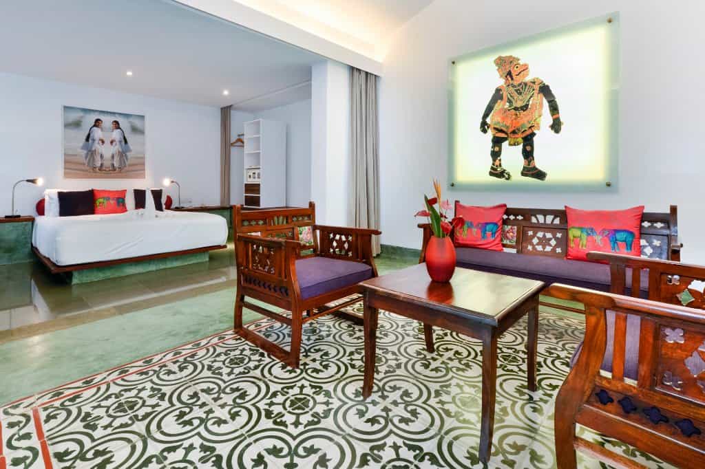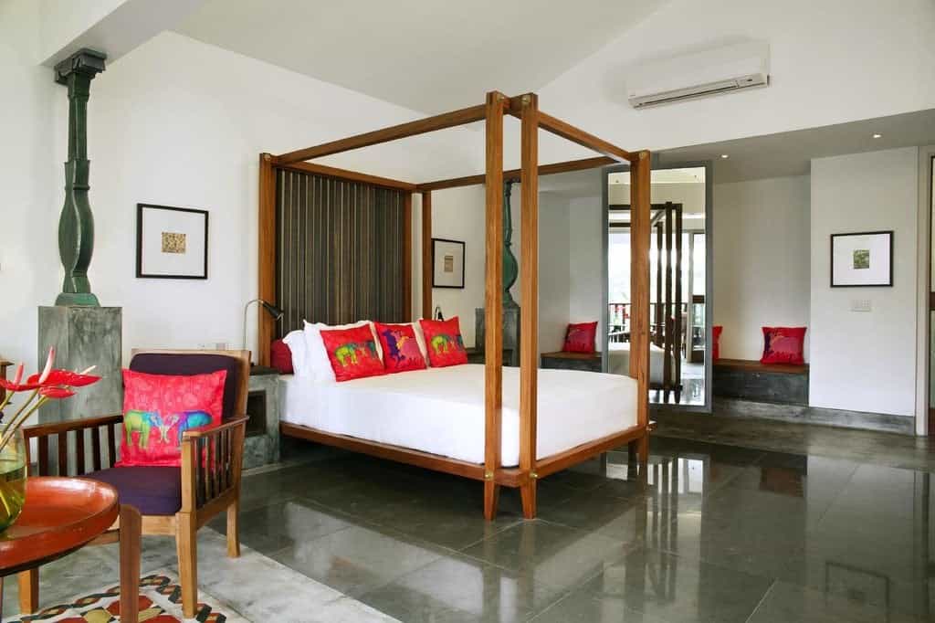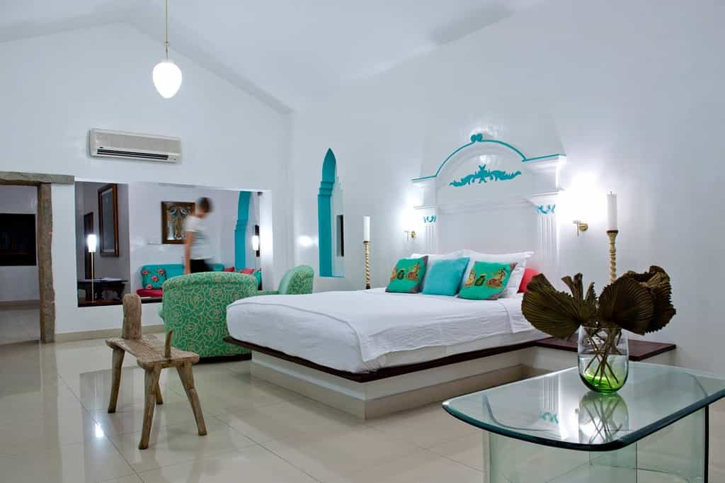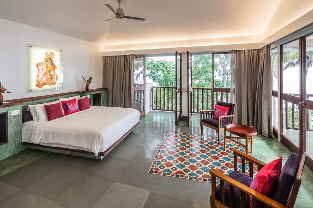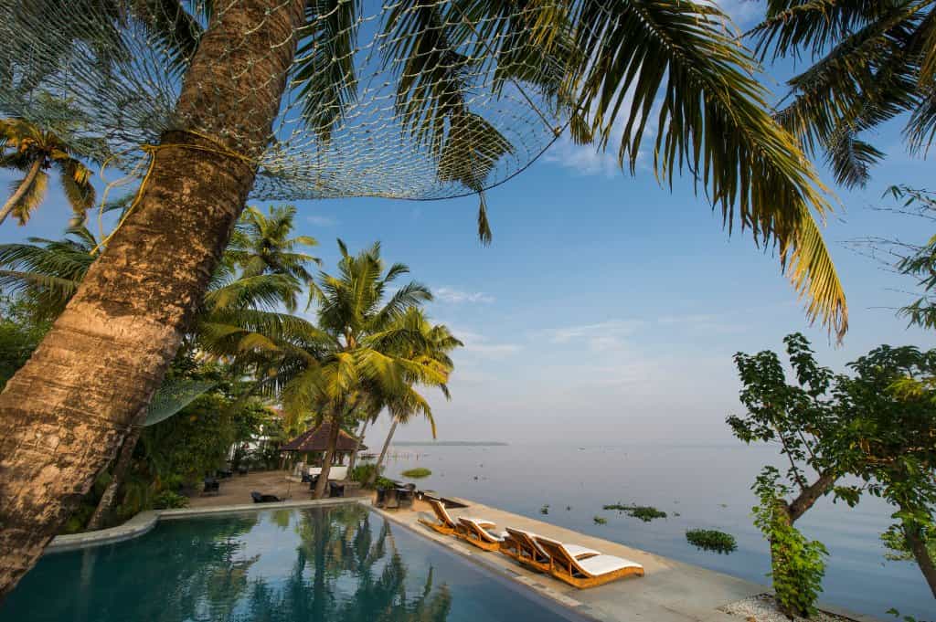 Purity has a selection of rooms each with an ornate bed, pops of pink decor and a veranda overlooking the lake. All rooms come with an en-suite bathroom decked out in green marble, a sunken bath and large mirrors; and there are three wellness Garden suites with room for a spa bed. The four Vembanad suites have a plush lounge area and large concertina doors opening onto the patio. The grandest suite occupies the entire first floor of the heritage wing!