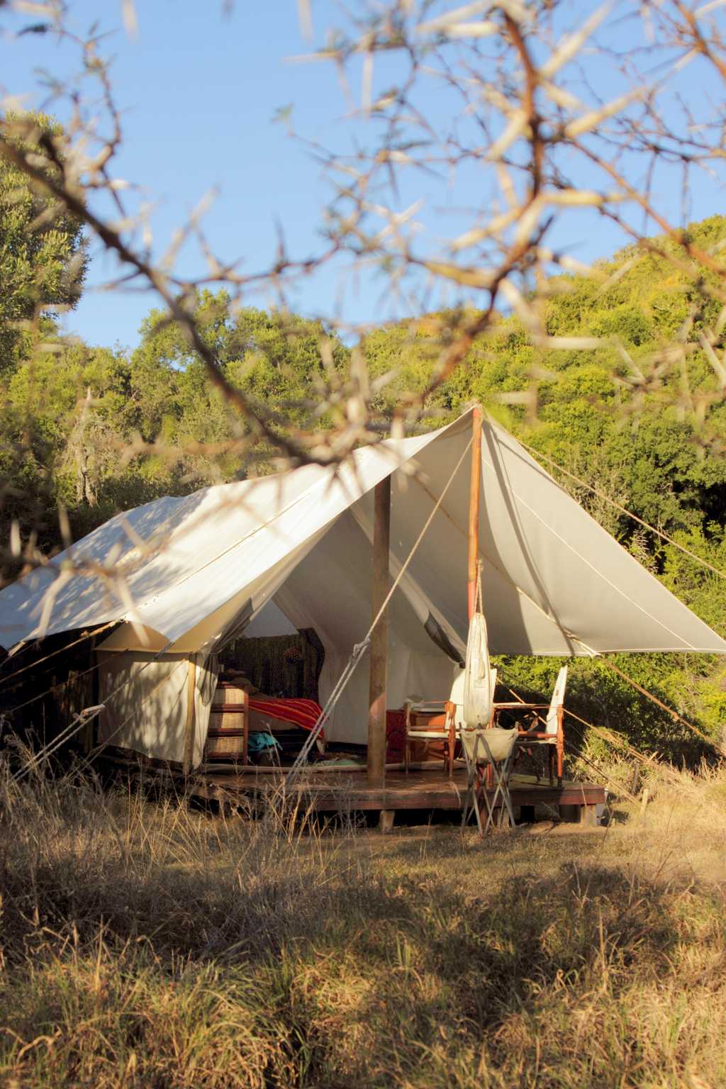 Each of the three safari tents is kitted out in minimalist colonial style, with the only concession to modern luxury being the en-suite bathroom with running water - hot showers are a distinct plus in this otherwise basic yet very comfortable rustic bush camp. Private wooden decks open out onto the surrounding wilderness. In the evenings, the soft romantic glow of storm lanterns adds to the overall feel of the tranquillity of classic vintage Africa under canvas.