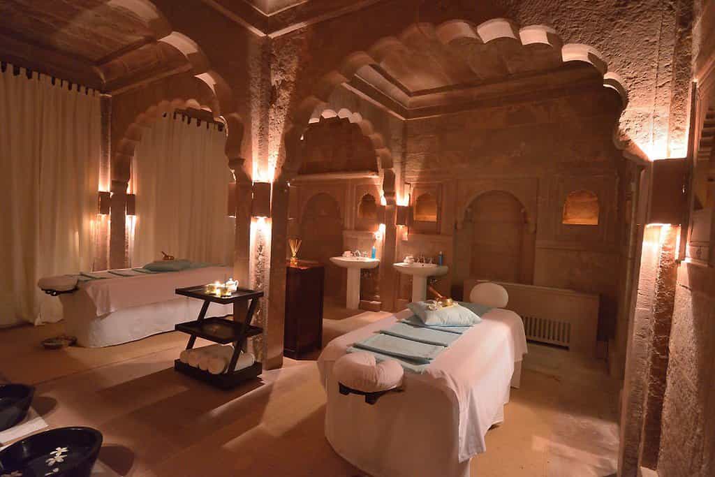 On grassy lawns dotted with trees, the hotel has a fantastic layout with plenty of little alcoves to relax. Located in the bygone 'Chamber of Carpets', Darikhana restaurant offers al fresco dining with lovely views of the fort and spices bought from a 200-year-old shop in old Delhi. The newer Baradari is open all day and serves up a varied menu in the atmospheric dining room. With Ma Earth products and a divine selection of treatments, RAAS' spa is a relaxing escape. The heated swimming pool and pristine white loungers finish the picture perfect setting!
