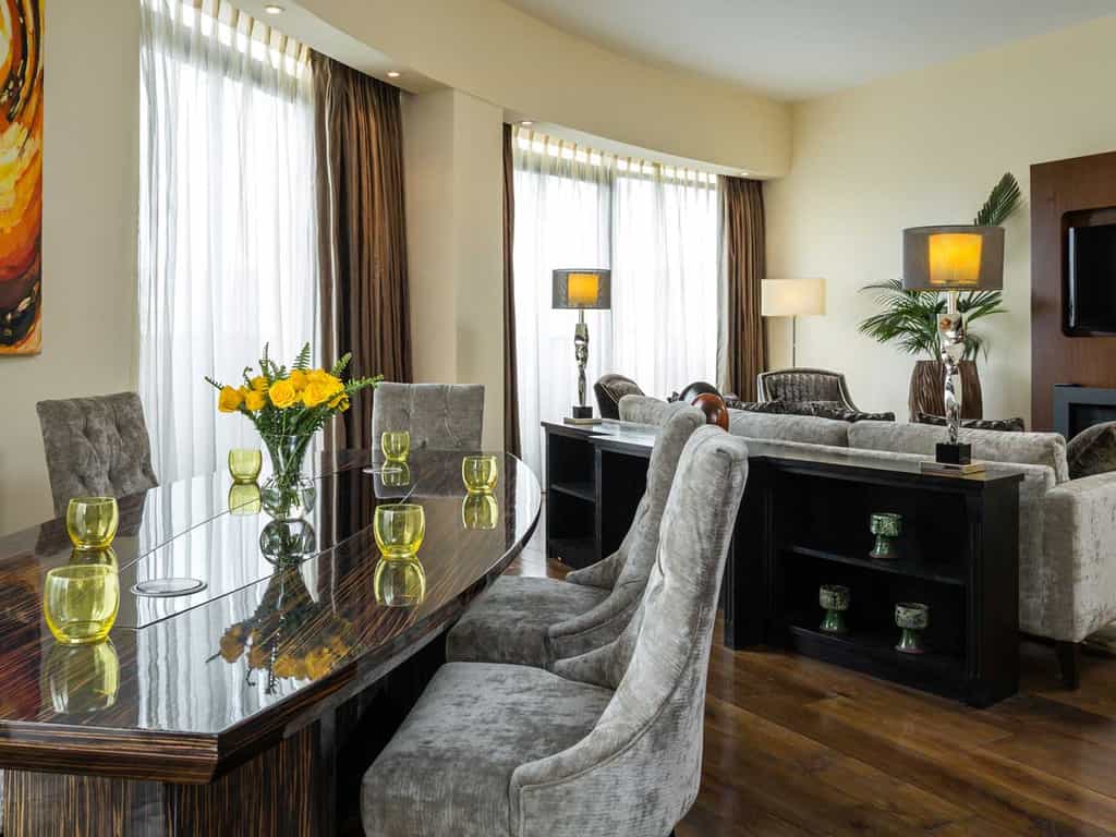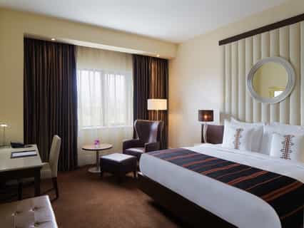 The Radisson's telltale white facade and blue signage strike a respectable, and familiar, first impression. Enter through a well-lit lobby, a modern space with a spiral staircase and chic chandeliers. For brasserie-style meals and fine dining, the Verres en Vers restaurant is a winner (it also has two private rooms for celebrations and intimate gatherings). The Signature Bar provides excellent cocktails and bites, and the Tomoca Coffee Shop serves the country's finest brews. The gym and spa are both well-equipped.