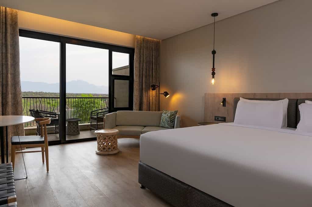 The 138 rooms and suites follow a Scandinavian-meets-African design philosophy using natural materials, wooden accents, and earthy tones. Standard rooms are spacious and modern with air conditioning, flat-screen TVs with Chromecast (hello Netflix), and private terraces overlooking either the gardens or mountains. Superior rooms offer the best mountain views, whilst Premium Suites go all-out with private pools and generous outdoor seating areas. All rooms come with proper mod cons including minibars, coffee stations, and bathrooms with walk-in showers. Family interconnecting rooms cater to those travelling with children, and the soundproofing means you won't hear your neighbours - or the main road that runs nearby.