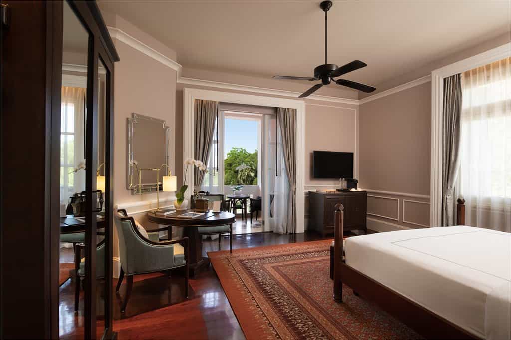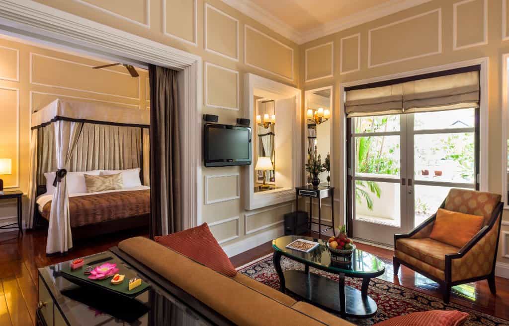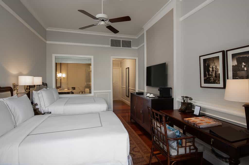 From State Rooms to suites (which have a separate lounge), each is bedecked with richly patterned carpets and faux-antique furnishings for a classic feel. Those in the Heritage Wing have kept their colonial aesthetic with handcrafted four-poster beds and 1930s memorabilia. The boutique Personality Suites were named after writers and travellers who left their mark in Siem Reap, and the Raffles Suites are draped in Cambodian silks and full of character. Most of the rooms have a balcony or spacious terrace and the bathrooms are spotless in Italian marble with a large shower and bathtub. Set apart from the hotel, the Royal Villa has two bedrooms and a stylish dining area.