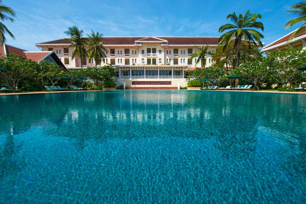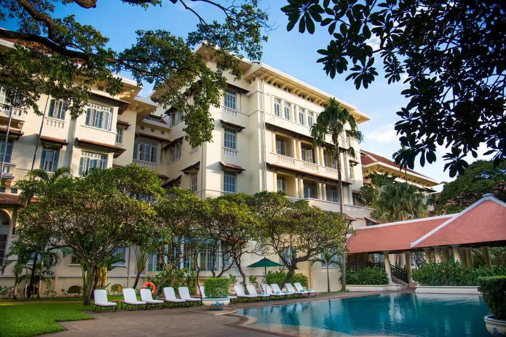 In gardens filled with the scent of frangipani, you have a choice of two refreshing pools (one's adults-only!). Dine on recipes once reserved for Cambodia's royalty in the elegant restaurant such as lobster amok or a local take on French desserts flambeed at your table. Breakfast is a feast of egg stations, pastries and fruit shakes while the bold Le Phnom 1929 is a jazzy evening spot to enjoy one of the famous 'Around the World in 80 wines'. The spa has relaxing Khmer treatments and a hot tub.
