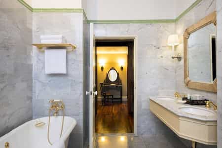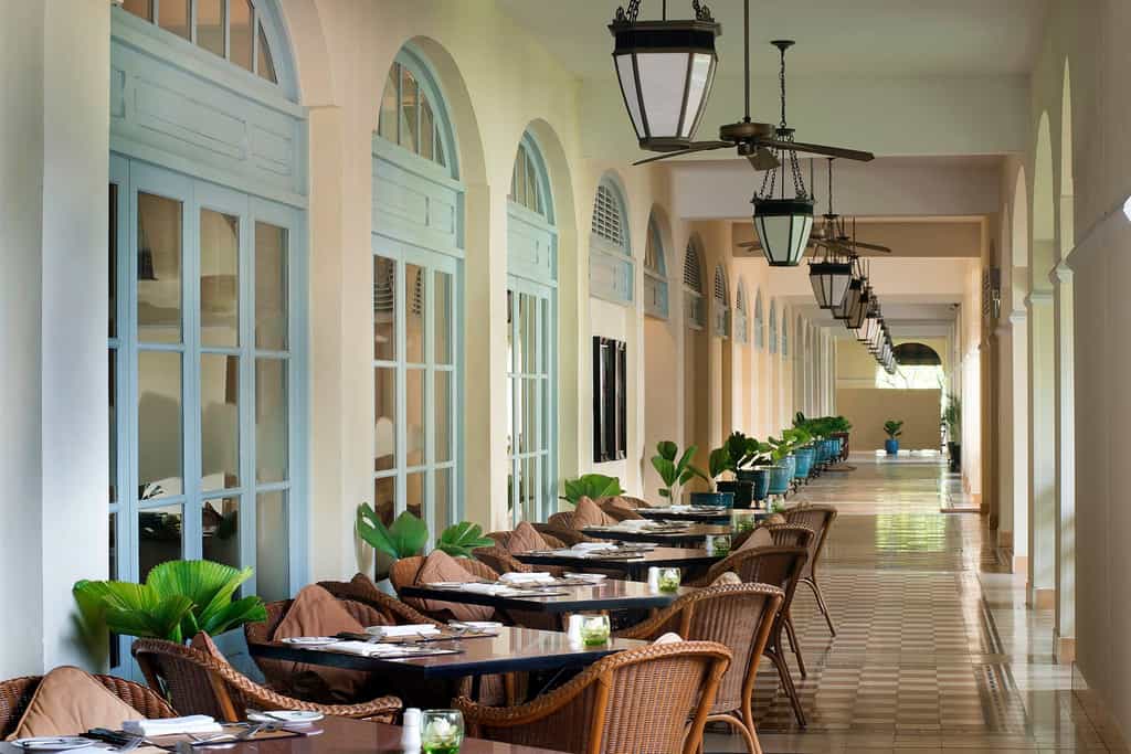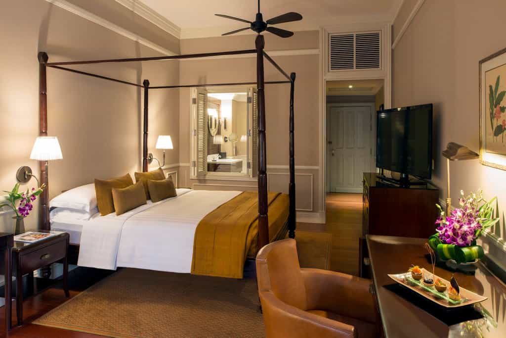 Set across the original and new wings, the rooms have a classic feel with moulded walls, gleaming wood furnishings and marble bathrooms. The Landmark Rooms enjoy a butler service, 1920s clawfoot tubs and antique decor (some have a balcony too). There's a range of suites, with four-poster beds and French overtones in the spacious living areas. Some have a deep history, with names inspired by well-known guests or periods in Cambodia's history. Raffles' finest offering is Le Royal Suite with two bedrooms, a dining room and lounge dressed in Khmer silks.