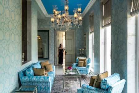 Prepare yourself for some divine interiors, beginning with the luxurious Royal Apartments - Maharani and Maharajah. As you can imagine, the double suite Maharajah is king with a private entrance hall, bar and dining room surrounded by original royal portraits. The Maharani also has a lovely heated plunge pool and each apartment comes with a private butler! The spacious Royal and Palace Suites come with a double bed and plenty of space to recline. Decorated with bespoke wallpaper, colour fills every room, including the selection of Palace Rooms.