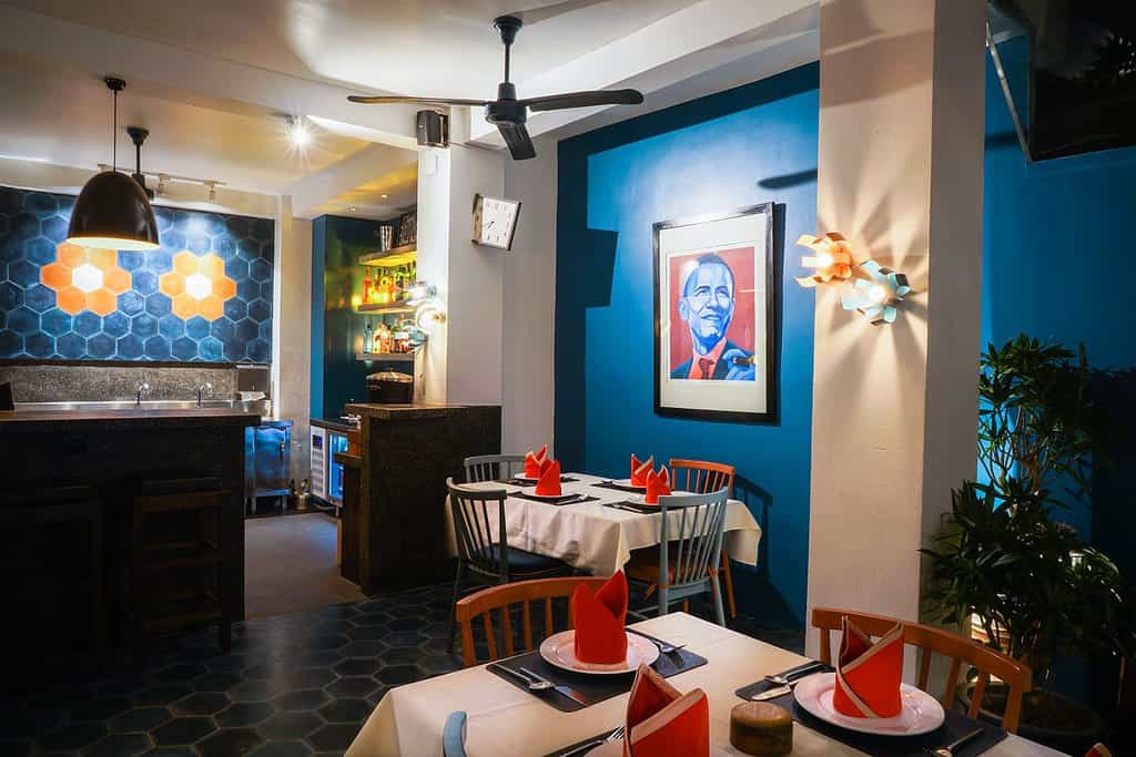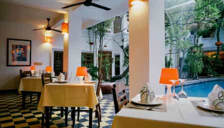 Contemporary Cambodian artwork, locally-made furniture and silk textiles create intimate, stylish spaces to relax in but the two saltwater pools are the piece de resistance. Surrounded by traditional Khmer village architecture and emerald-green tropical gardens, you'll forget you're in the heart of the city in a flash. The open-air restaurant serves authentic Cambodian and international fare, with breakfast extending till midday for temple tour recovery. There's also a poolside bar - ideal for sunset cocktails - and the spa offers everything from aromatherapy to foot massages.