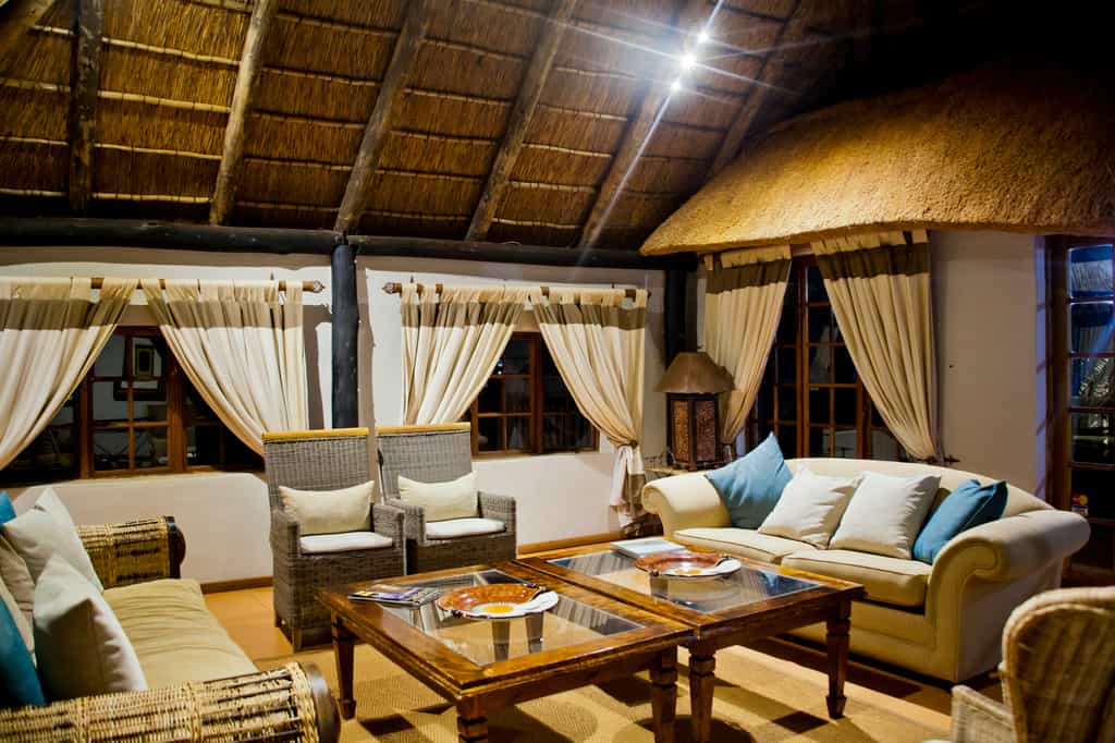 Guests stay in 22 thatched timber lodges on stilts, each with three or four en-suite bedrooms and an open-plan living area facing out to a private deck. The wooden interiors are cosy, with a rustic African theme and all the facilities you need. And of course there are those views – because of the sloping site, the climb between the main area and the lodges can be steep. However, the vistas along the way make the effort worthwhile.