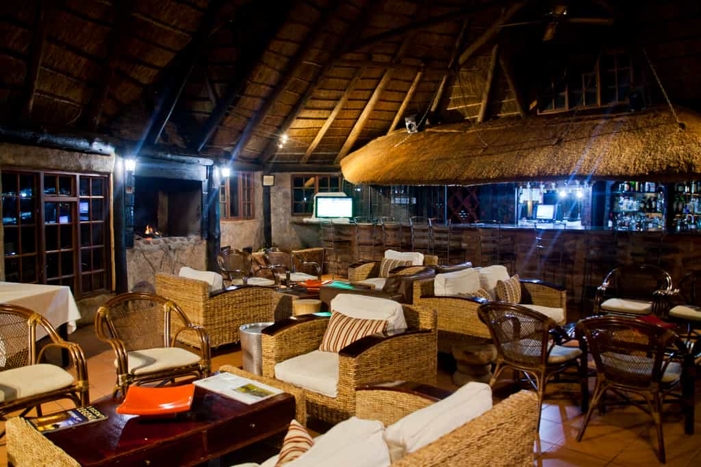 Ravineside Lodge is aptly named – it clings to the upper slopes of a steep gorge that falls away to the valley below – and the views are simply stunning. Elevated wooden walkways link the guest lodges to the main area, with its rustic African-style bush bar and dining room, and an outdoor boma beside a swimming pool in a clearing down below. The restaurant serves simple and very tasty bush cuisine, and the overall atmosphere is delightfully laid back.