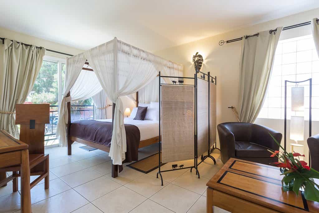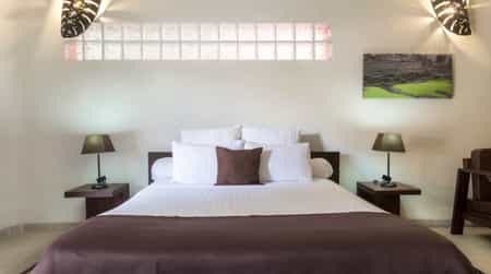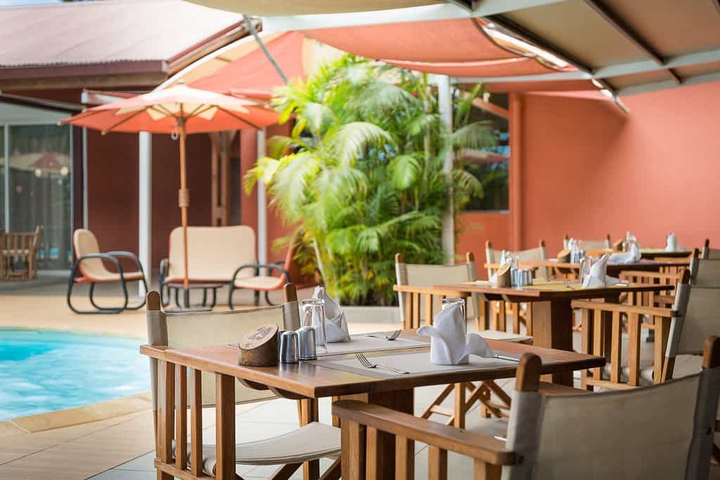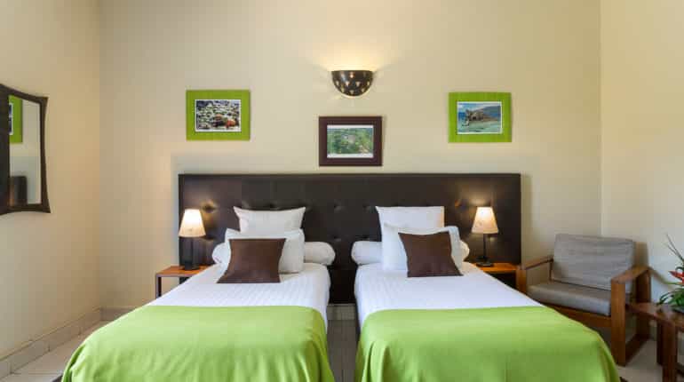 The high-roofed main area is a large, cool space, with plenty of intimate seating areas. All meals are served in the airy dining room. Don't miss breakfast buffet with its variety of cheeses, really good breads, meat (zebu, ham and turkey), fruit, pastries, cereals and delicious hot chocolate – enough to keep you going throughout the day. Dinners are mellow affairs, with soft lighting and a menu with something for everyone. Enjoy the spa, heated pool and free wi-fi.