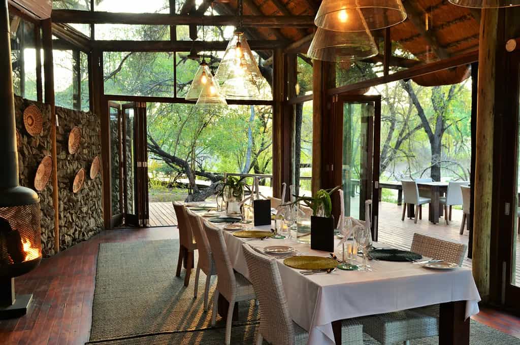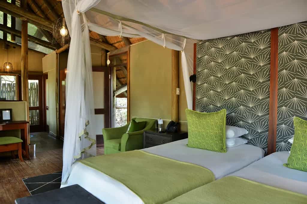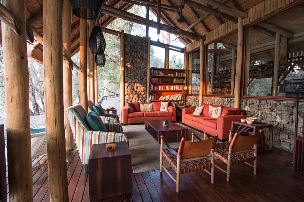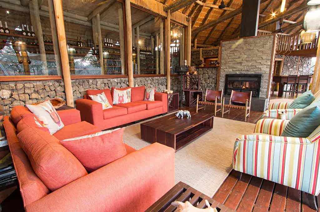 Rhino Post Safari Lodge has a beautiful, contemporary design built from natural materials like stone, wood, thatch and canvas to create an authentic bush environment. Walkways are raised and battery power is used for lighting. The main lounge has a cosy fireplace and is the perfect spot for a sundowner. Meals are served in the camp’s dining area, which is set under magnificent Tamboti trees. There is a revitalising swimming pool for guests to relax in while overlooking the waterhole.