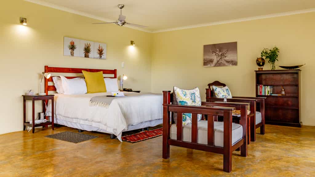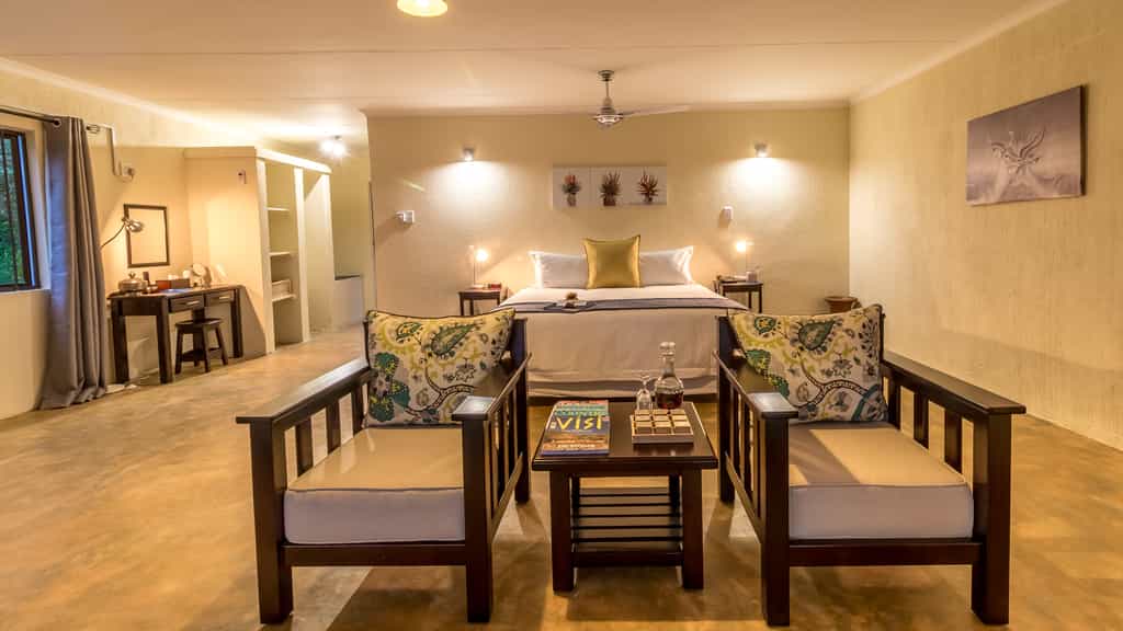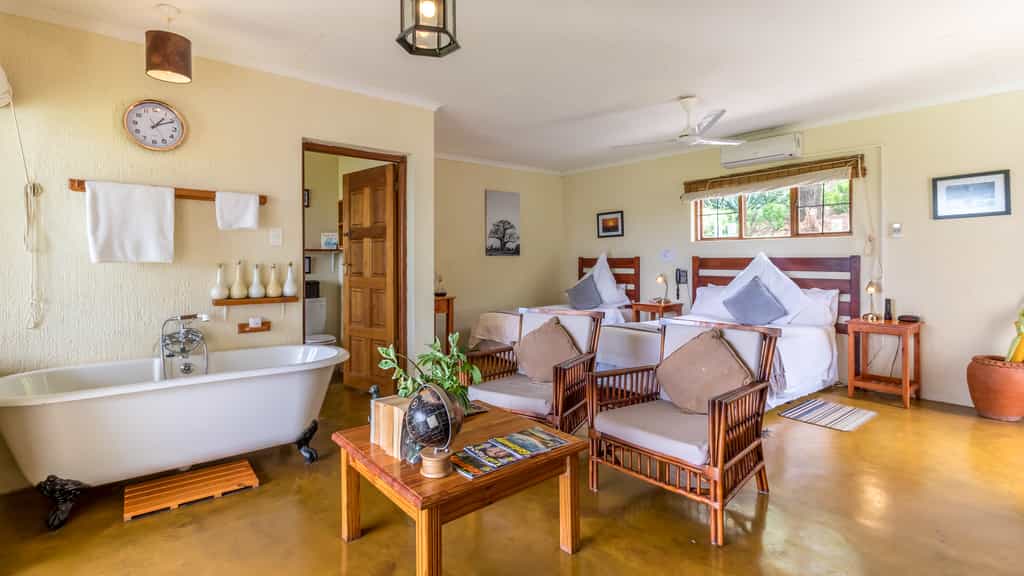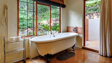 Each named after a native tree, the rooms are cosy and decorated with mix-and-match furniture, photographs of the flora and fauna, and colourful rugs. The beds range from queen to super king-sized, all draped in 100% percale sheets, and every room has a private veranda with a view. The rooms are a variety of sizes and some include a clawfoot bathtub in the open-plan living area, while others boast an outdoor shower. The hillside suites accommodate up to five people and share a secluded pool.