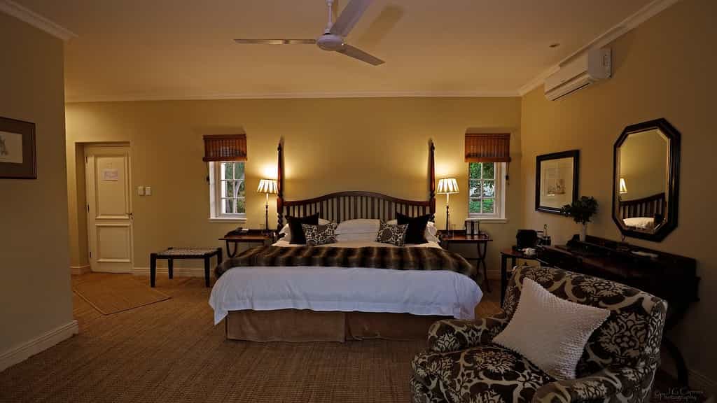 Eight spacious and beautifully furnished individual suites, their sliding doors opening to a patio area that faces outward to the bush, surround a garden containing centuries-old indigenous trees. All suites are air-conditioned, and each is equipped with a ceiling fan, safe, minibar, satellite TV and a lush en-suite bathroom. Families can choose to stay in a suite with interleading doors or at the exclusive-use villa with its own chef. The Honeymoon Suite has its own private veranda and plunge pool.