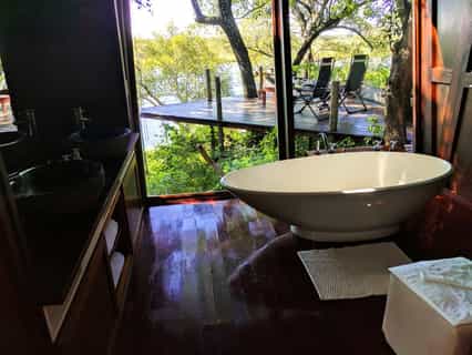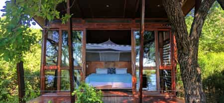 Riverdance is a hidden paradise at the riverbanks of Okavango. Make it your home to relax, enjoy life and explore this incredible region, which is completely different from the rest of Namibia. We offer luxurious, spacious, private water front units, nestled under beautiful old age trees. You will enjoy only the best locally manufactured pure bed linen. For families there is enough space to put two extra beds.