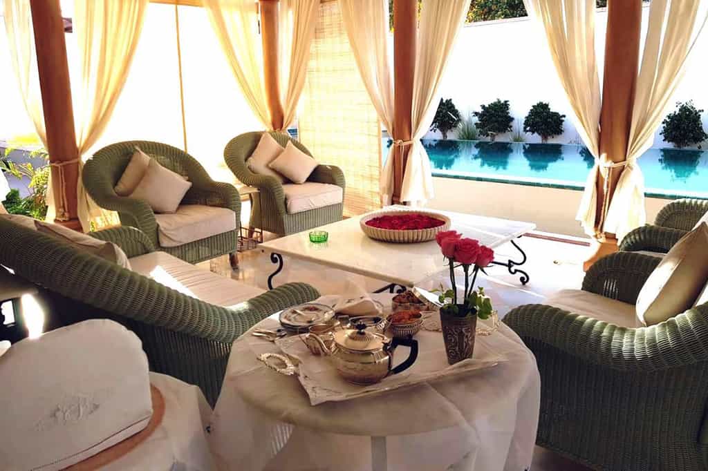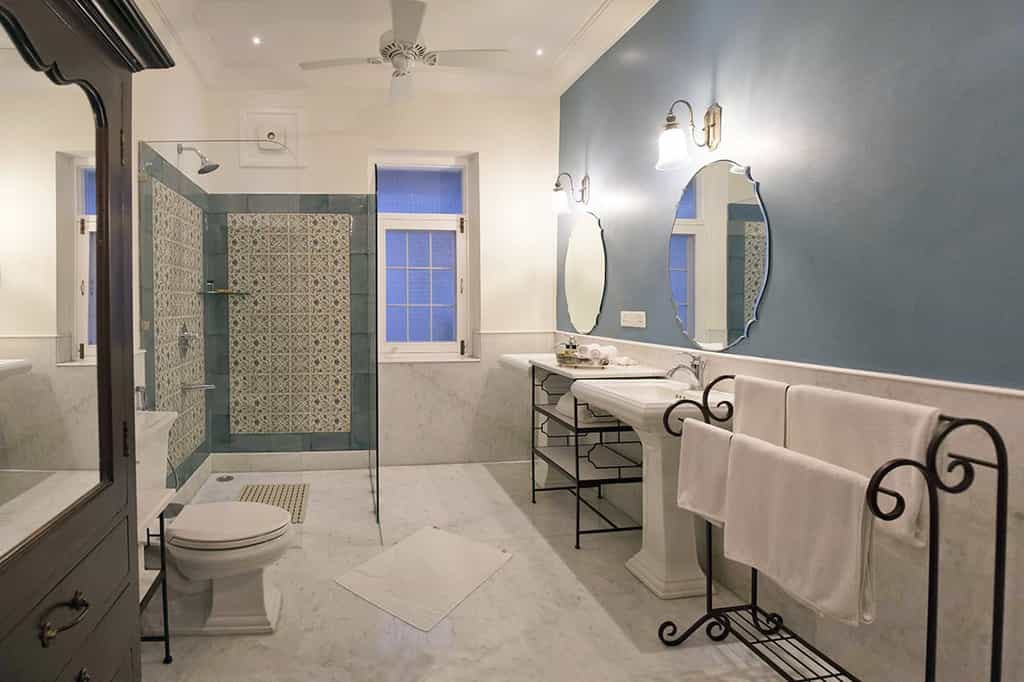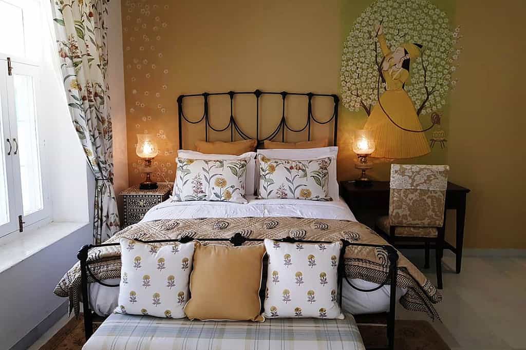Motifs inspired by Indian mythology and fables fill the rooms with colour - and all have a lovely garden view. From summery florals to hot pinks with scatter cushions to match, the hotel's six suites and three standard rooms are uniquely designed. Each room also comes with air con, flat screen TV, Nespresso machine and mini lounge area for a little extra relaxation. The en-suite bathrooms are quite grand on their own, complete with Forest Essentials toiletries and antique mirrors.
