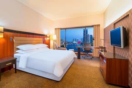 Unwind in elevated river view hotel rooms and suites, and enjoy indulgent amenities like resort-style pools, meditation gardens, steam rooms, tennis courts, and a Sheraton Fitness center.