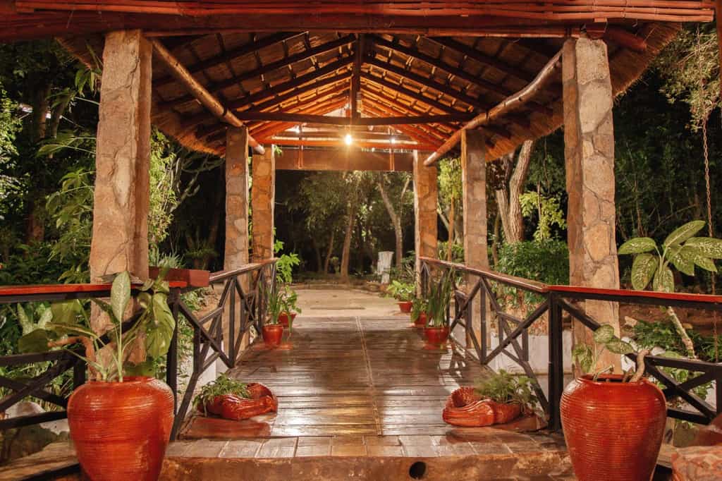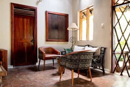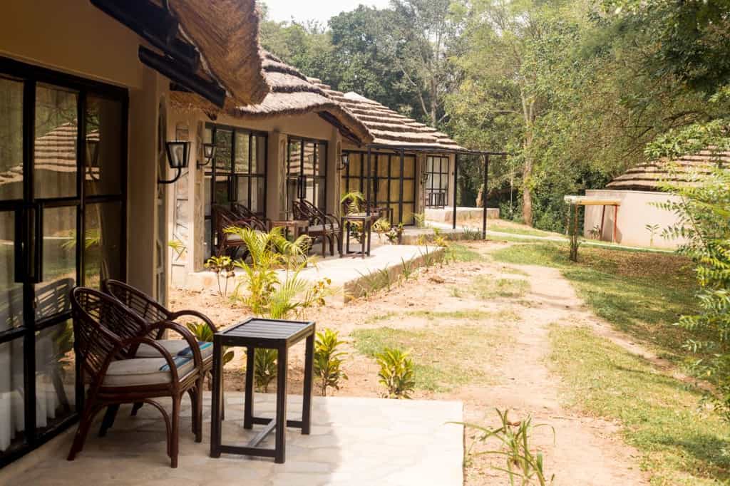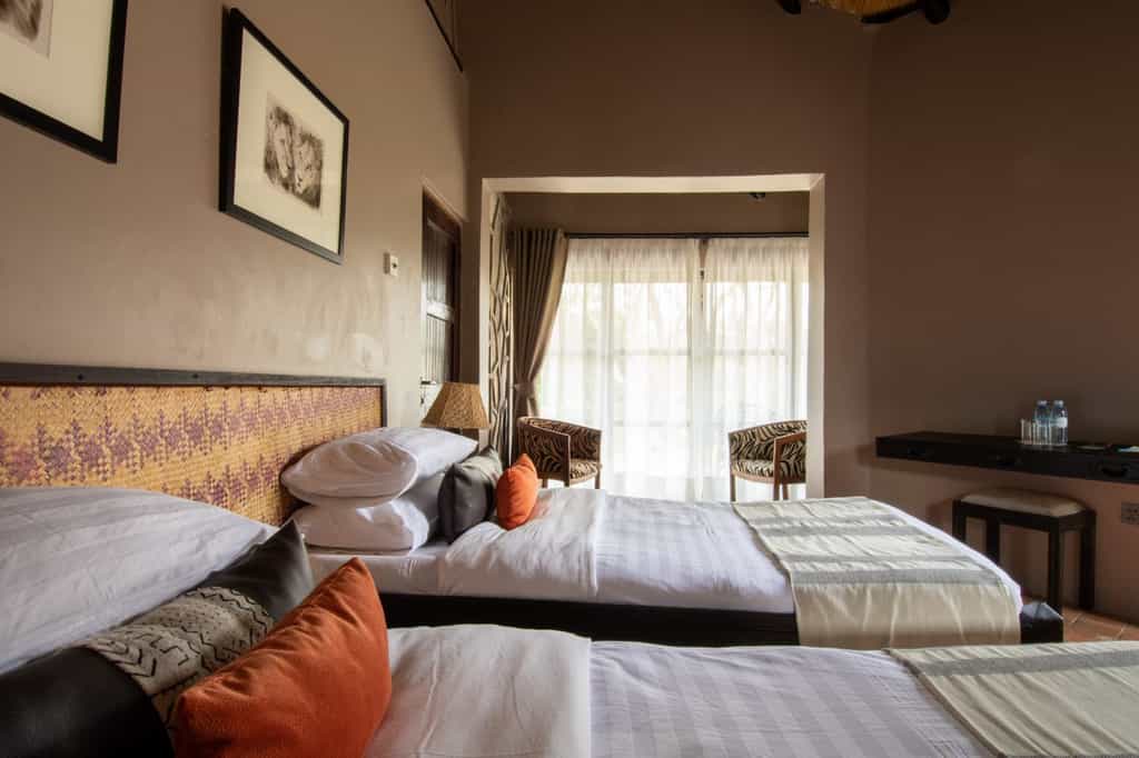 Dotted around the pretty gardens and surrounded by blooming trees and grassy knolls, the rooms at Sambiya are shady, cool and quiet. There are 20 stone cottages in total and all are spaced far enough apart from their neighbours for maximum privacy – particularly useful when sitting outside on the quaint verandas. Inside, double beds and mozzie nets are the features of the bedrooms and the ensuites are practical and sensible with (very welcome!) solar-heated showers.