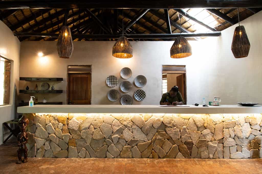 In the heart of camp, the main lounge and bar is a high-ceilinged thatch-and-stone building, scattered with comfy armchairs and sturdy wooden tables scattered. Added touches are a fireplace to ward off the chill on wintery Ugandan evenings and swimming pool to do the opposite outside! Cold drinks are served all day from the bar and in the evening, floodlights at the river in front of camp allow for excellent night game watching.