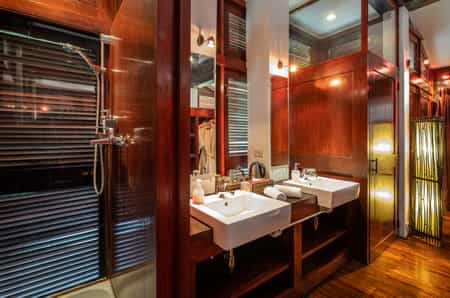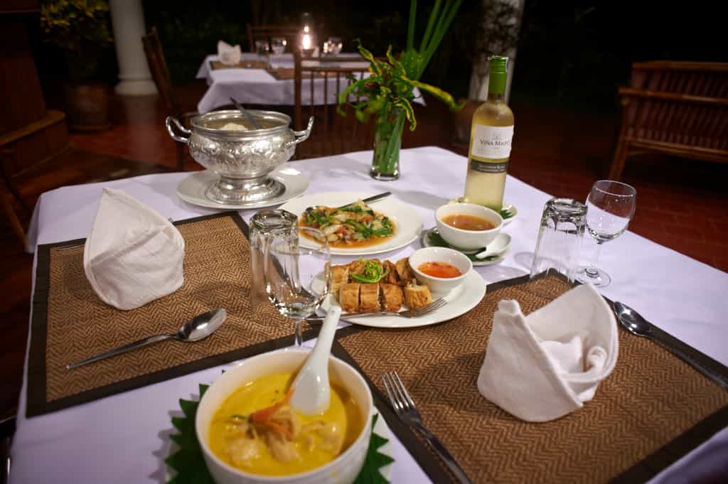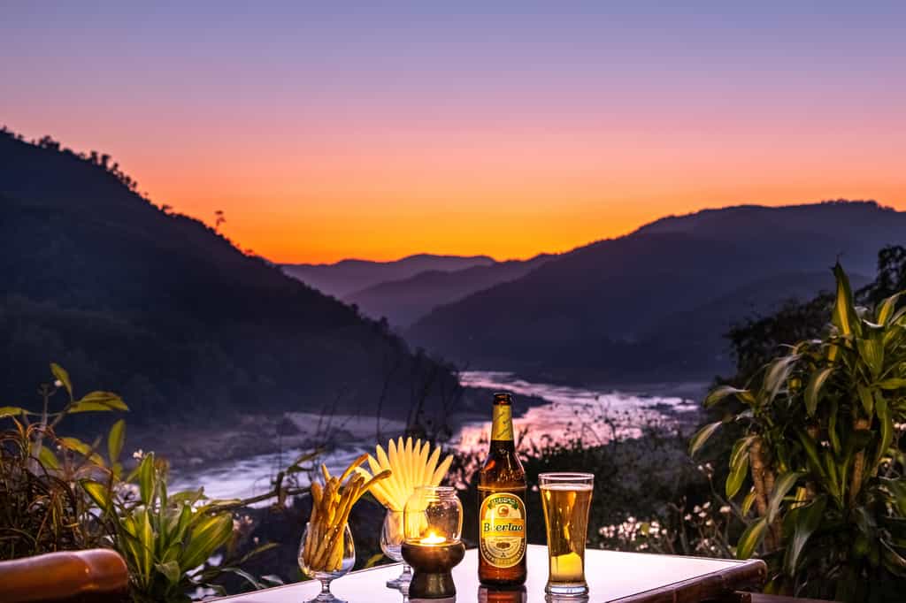 The Sanctuary is authentic to a 'T' and is centred around a large wooden sala, which houses the restaurant, bars and lounge. As evening settles in, enjoy a cocktail or a glass of Chilean wine at the bar and watch the buffalo wallow in the river opposite. At dinner, choose from a selection of Laotian dishes like bamboo shoots stuffed with pork belly and homemade mango sorbet for dessert. Halfway down the hillside, the pool is a welcome addition for cooling off on a steamy summer day.