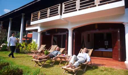 Taking it easy comes so naturally at the Sanctuary, so your days might begin with a leisurely coffee on the balcony, followed by a swim or a cooking lesson with the chef (wake early to pick out ingredients at the market) and a game of badminton on the lawns. Of course, there's also more up-and-at-em activities including hikes to the Tad Talae waterfall in the mountains, or walks through the forest to visit a local village. Maybe the best part is spending a few hours with the elephant at bath time.