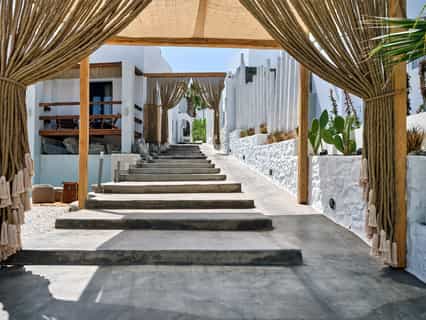 Sandaya Luxury Suites located steps away from the heart of Naoussa, the capital of Paros nightlife, boast minimal interior design and decoration inspired by the bohemian style exuding a welcoming, cozy feeling that will make you feel peaceful and serene.