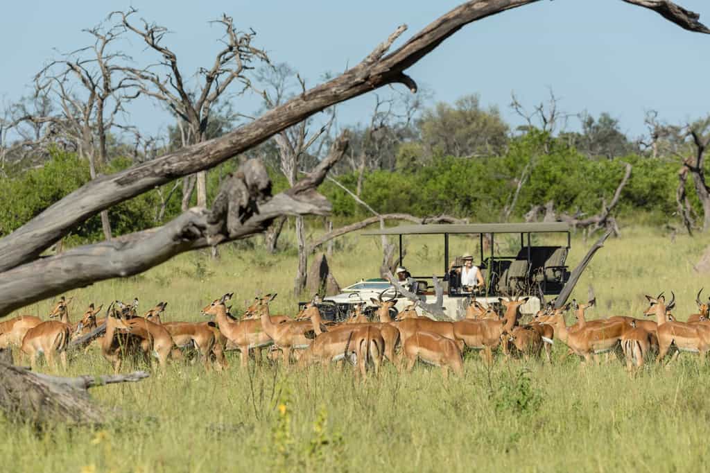 Sango's privileged location - close to Moremi National Park but in its own community concession - means it offers access to one of the Delta's prime regions, with maximum flexibility. Drives are conducted on both sides of national park boundaries and are thus not limited to daylight hours. Walks and mokoro trips are great ways to slow down and enjoy the little things, but are both seasonally dependent. The camp's hide, just a few minutes' walk from the main area, allows great solo game viewing between drives.