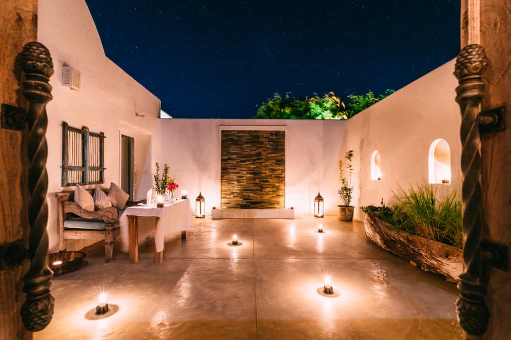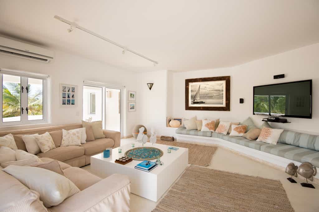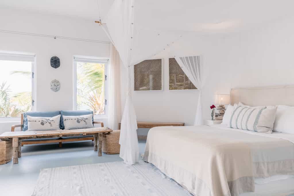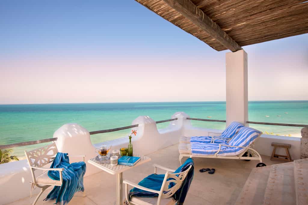 The crisp white walls and elements of scattered ocean blue decoration echo's a slice of a Greek village brought to the Mozambican shores. Light and natural the villa is all about creating spaces for you to kick back and take in the surrounds in solitude. The main villa is spread around an inviting pool, central dining and outdoor barbecue area. There are plenty of scattered patio areas; on the roof or nearer the ocean, if you are seeking a specific retreat. Take in the lapping ocean views from the rooftop Sala Bar while enjoying Santorini's creative and tasty cocktails.