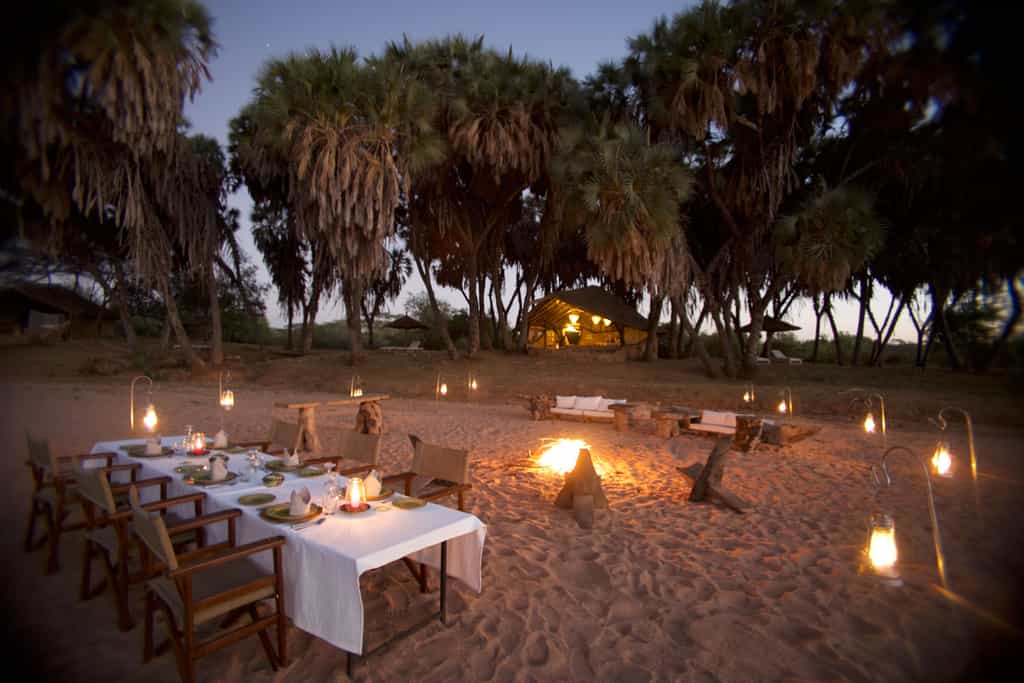 The three stone bandas are some of the finest we’ve seen in the bushcamp game. Sure, you won’t find every luxury but that’s not what it’s about. Architecturally, they’re a marvel. We love that they’re open-fronted (with canvas roll-downs for nighttime) and the river sand has been incorporated in the design of the viewing deck area. The quilted bedspreads on the king-size beds are a nice touch, so is the sofa in a boat that’s alongside the sun loungers on the dry river bank.