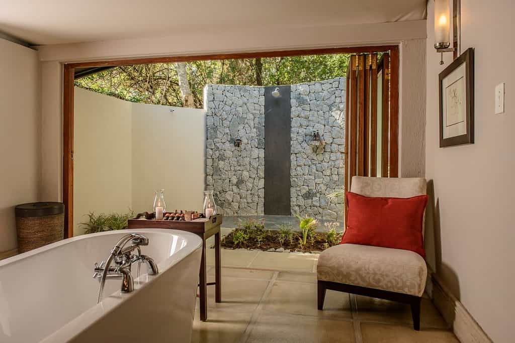 At the heart of the lodge, views stretch out from the patio across the gardens and surrounding bush. During the heat of summer, the main swimming pool is the perfect spot to relax and watch wildlife come to drink at the waterhole. The library offers internet facilities, and the chance to download the day's photographs. Curl up with a pair of binoculars on one of the raised viewing decks, or visit the curio shop for some retail therapy.