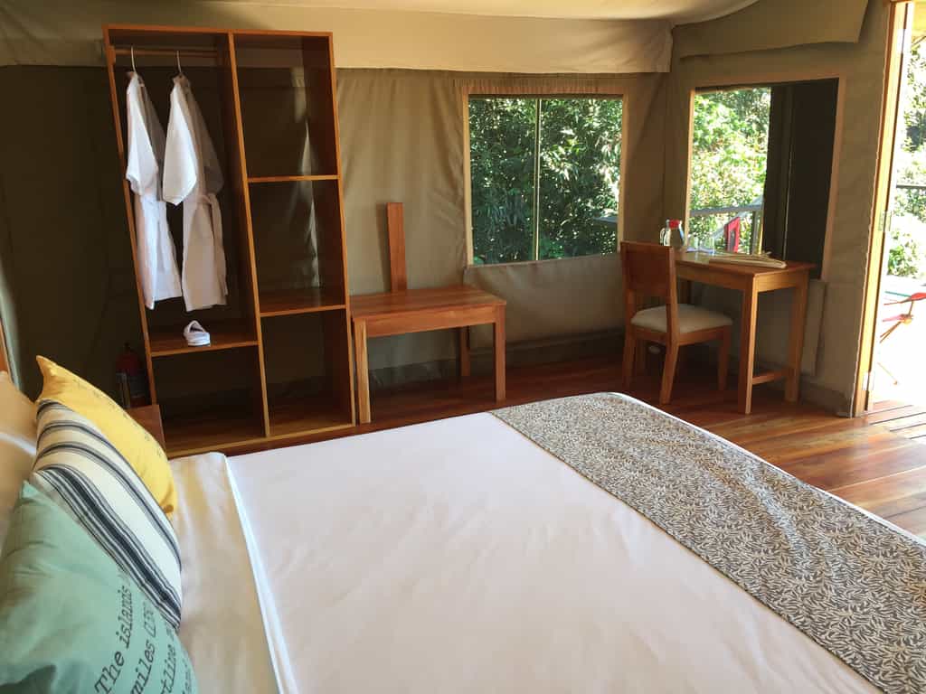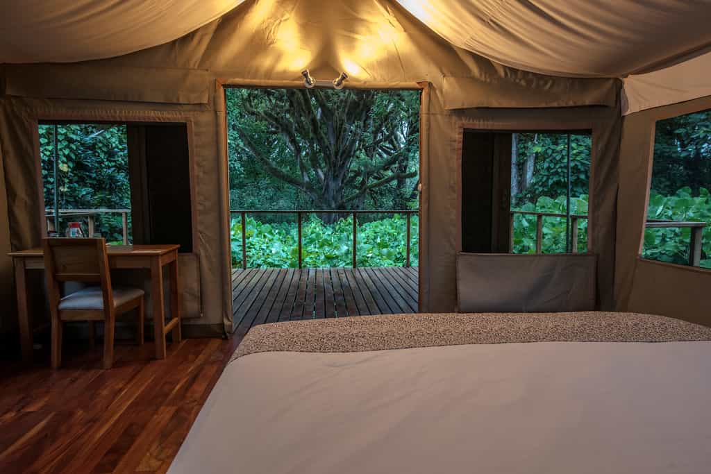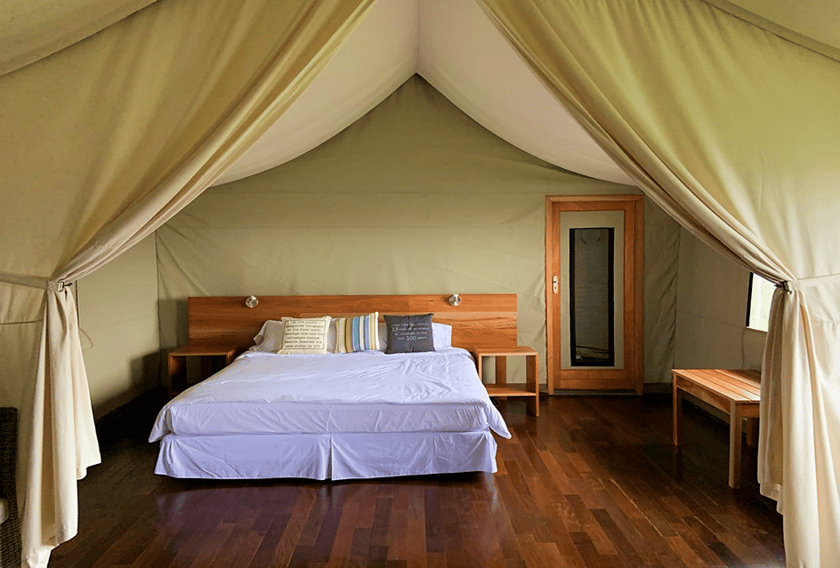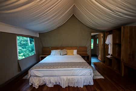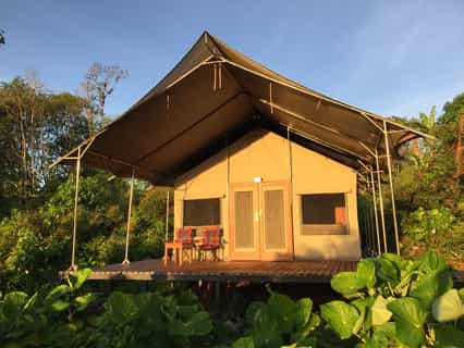 Imported from South Africa, the canvas safari tents sit on wooden decks and are reached via winding, tree-lined pathways. Four have a King-size bed while a dozen more are furnished with twins. Taking its eco-conscious ethos seriously, the tents have no TVs or aircon, but a portable fan and mosquito net mean you're perfectly comfortable - and there's no better lullaby than the chorus of forest creatures. Bathrooms are well-equipped with piping-hot tempered glass showers, soft robes and a hairdryer.