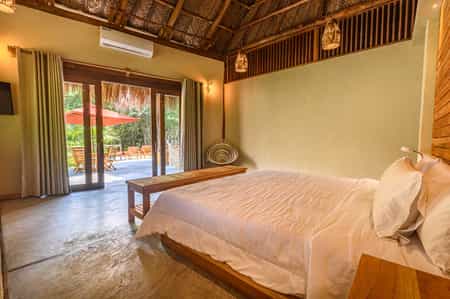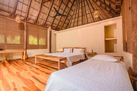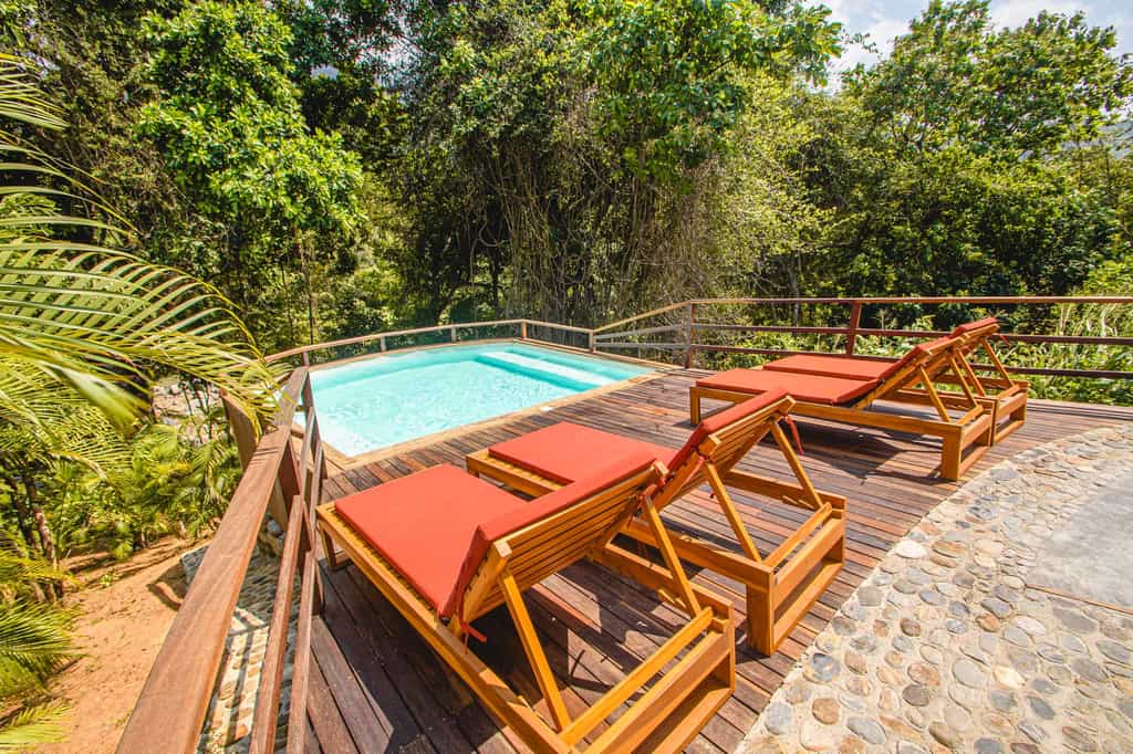 Watapuy experience, an exclusive hotel located just 5 minutes from the main entrance of Tayrona park and 3 minutes walking from our Senda Koguiwa hotel, the architecture is in fact very similar to the latter, but they differ in that this new acquisition has a More exclusive concept since it only consists of 12 cabins, 6 deluxe and 6 standard are very spacious, with a terrace and a small private pool in front of the stone river in each one, in addition the hotel also has its own pool for the exclusive use of all customers.