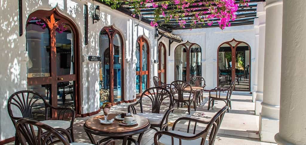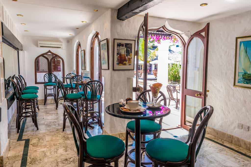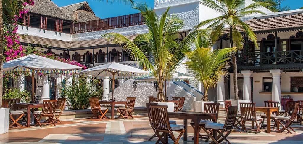 Vegetation screens the hotel's frontage (apparently a traditional custom), so it's only on entering that you see its spread – the pool, dining areas and, though an archway, the crystalline beach. There are dozens of cool spaces for relaxing – a thatched poolside lapa, palm-shaded lawns, a sparkling pool, or the umbrella-shaded courtyard restaurant. The indoor spaces are also cool and breezy, with several restaurants, from fine-dining to pizza parlours and the Arabian dhow-themed Jahazi Restaurant (exceptional seafood dishes!).
