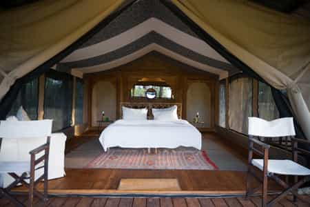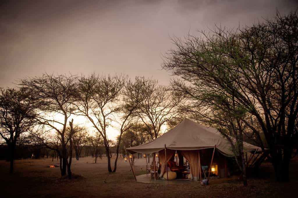 Eight intimate tents and two family suites are kept cool under the branches of the magnificent acacias - take advantage of the shade and sit outside on your veranda, binos in hand. Inside you'll find pretty, wrought-iron beds, writing desks and lots of storage space, and woven rugs and colourful cushions add a touch of Serian character. Bathrooms are ensuite with flushing loos and inside/outside showers. Serene environment with no Wi-Fi, encouraging a digital detox experience.