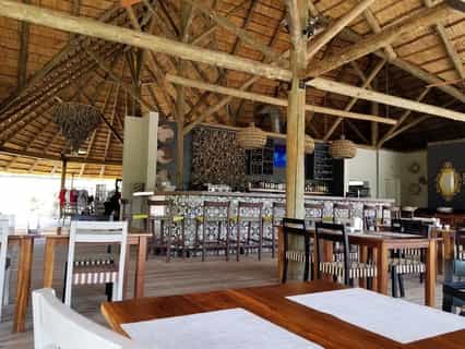 The main lodge is mostly open-air, set beneath a thatched roof and furnished with powder-blue couches, slouchy deck chairs and lots of artwork. Relax in the lounge with a book from their collection or grab a drink from the bar to enjoy beside the two-tier pool. The Shearwater Cafe serves fabulous dishes including freshly-caught Zambezi Bream, aged Zimbabwean steaks and crocodile wasabi wraps - as well as a more continental selection! If you're in need of some pampering, the spa offers soothing massages.