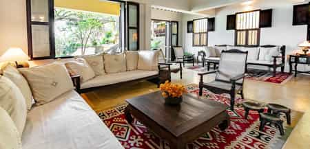 Brightly coloured, traditional woven fabrics adorn all areas of this magnificent converted home. Entering into the property through stunning carved wooden doorways you are welcomed into a shady, open courtyard filled with plants and flowering pink bougainvilleas. White washed walls tower up three floors leading to spacious bedrooms and a day room and terrace that provides some wonderful extra lounging space if you are in need of private sanctuary.
