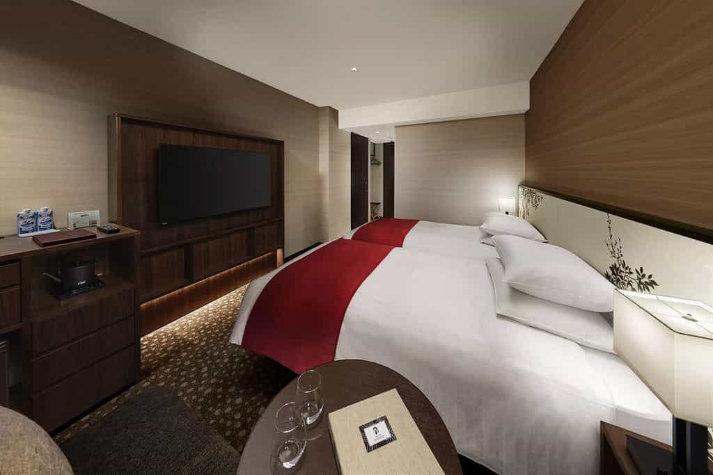 Rooms at Shiba Park Hotel are a harmonious mix of modern design and delicate Japanese elements, complete with eco-conscious self-care products, ensuring a comfortable and environmentally mindful stay.
