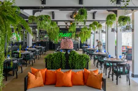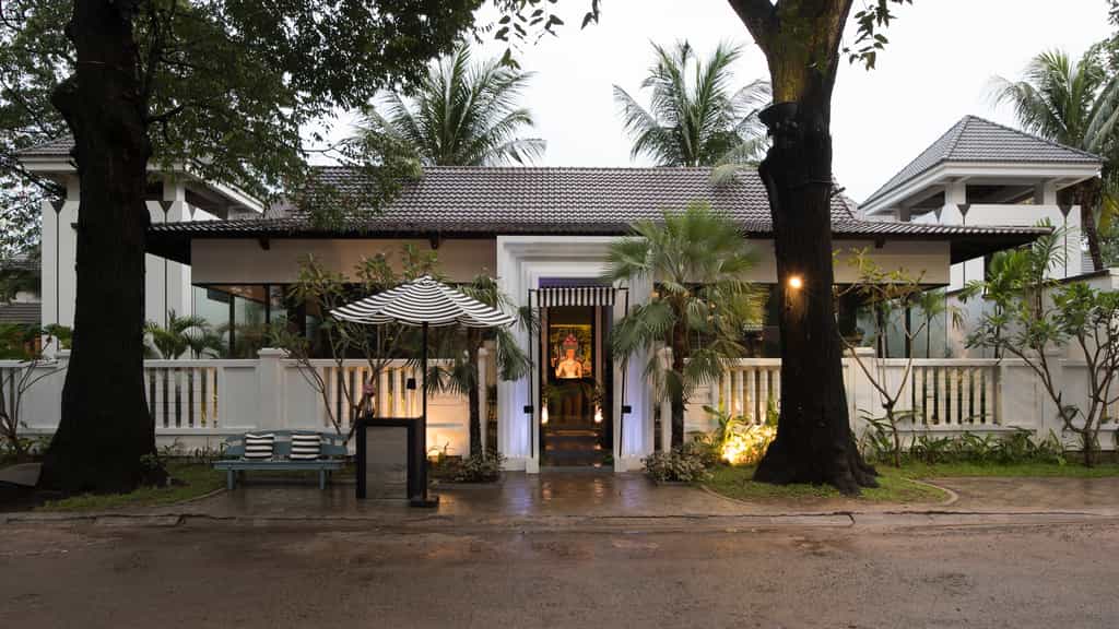 Shinta Mani's exterior gives a good impression of a subtle Cambodian hotel, but the lobby quickly shows off its avant-garde side with bold apsara (cloud spirit) murals. Bai Tong offers a varied menu of international fare and Khmer classics, enjoyed in a bistro draped in greenery or on the terrace. Be sure to try inventive dishes like wok-seared salmon with mango salsa paired with a Ginger Khmer. A Siem Reap staple, The Steakhouse offers hearty meals and a winning wine list. Stroll on over to the sister hotel for a coffee bean cleanse and monk's blessing.