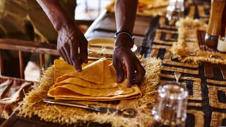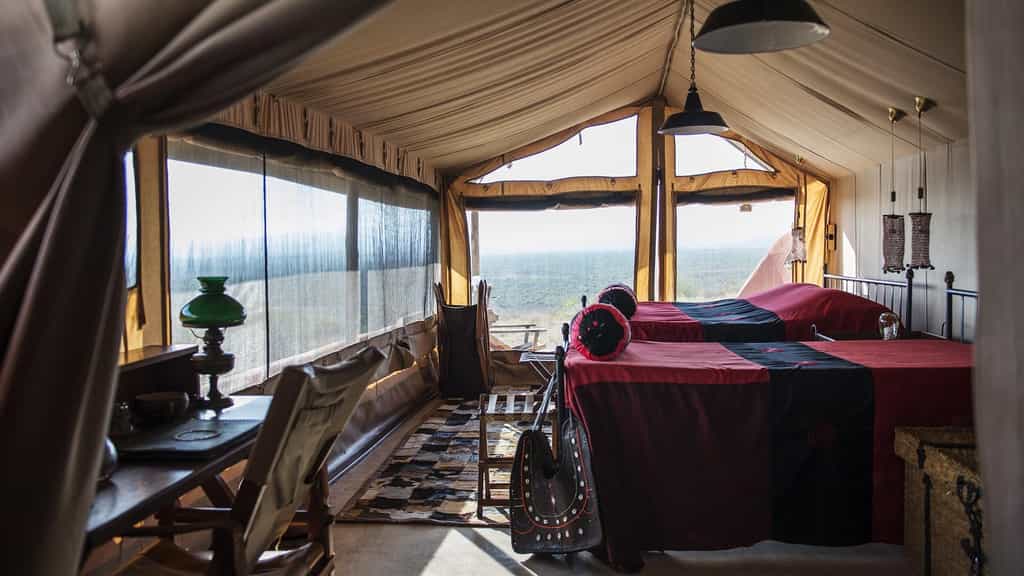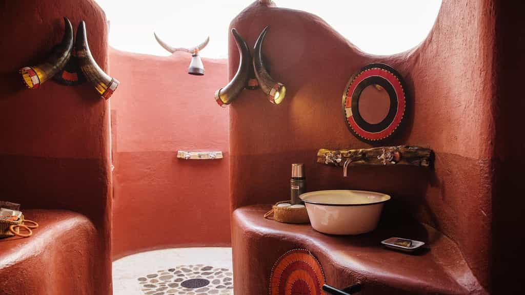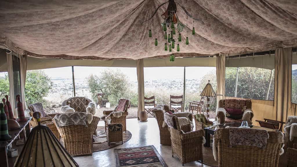 In the Mess Tent you are treated to luxurious fabrics, a mix of local art and custom furnishings. The candelabra, china and silverware in the dining area ensure that you are surrounded by luxury at all times. You will not be disappointed with the service or the grand selection of wines! An atmosphere of infinite calm can be felt as the outdoor fire is lit, as the sun sets on beautiful valley below and the stars emerge to say goodnight.